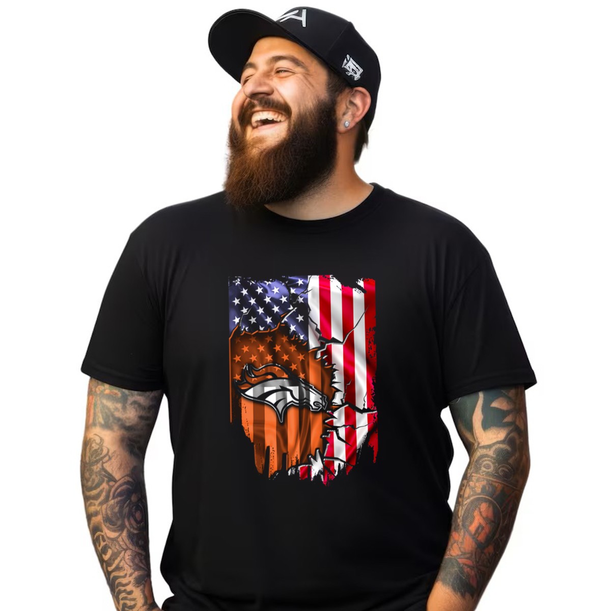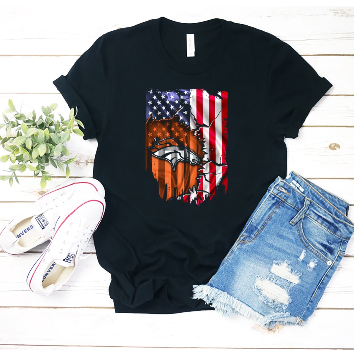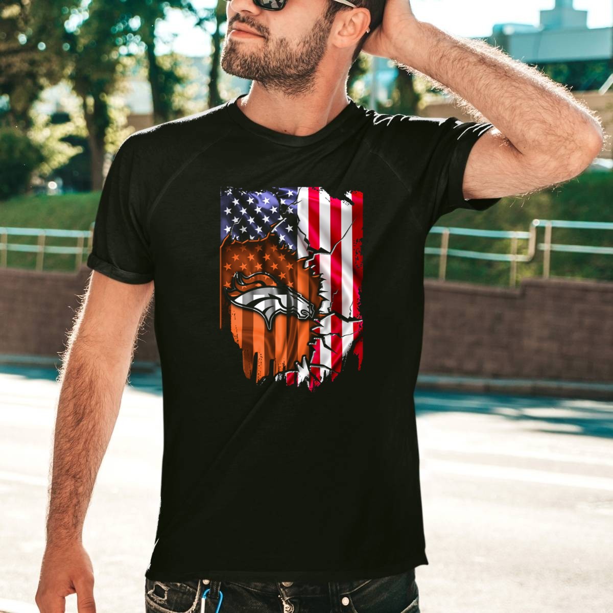 Flag V2 Denver Broncos American Flag Rip Style T-Shirt