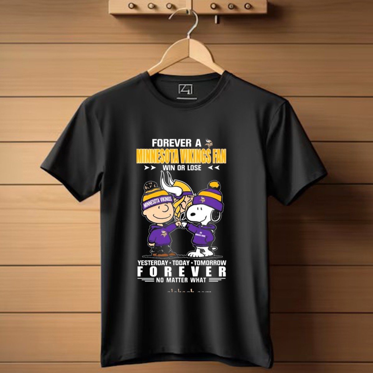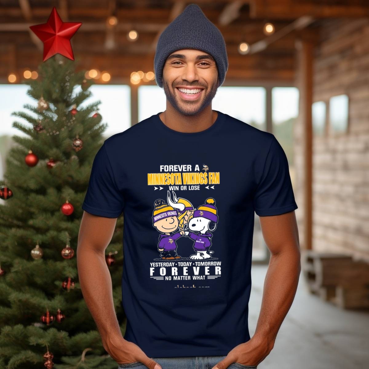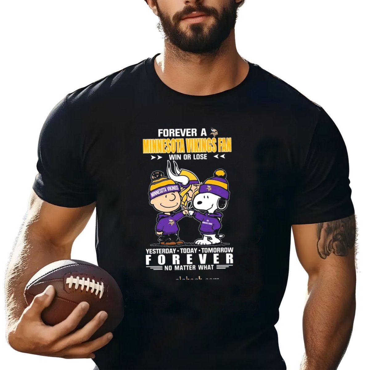 Celebrate your unwavering support for the Minnesota Vikings with our “Forever A Minnesota Vikings Fan” T-shirt featuring the beloved Charlie Brown and Snoopy! This unique design captures the essence of loyalty and passion for the team, making it perfect for fans of all ages. Whether you’re cheering from the stands, hosting a themed event, or just enjoying a casual day out, this shirt is a must-have addition to your wardrobe that showcases your dedication to the Vikings in a fun and nostalgic way.