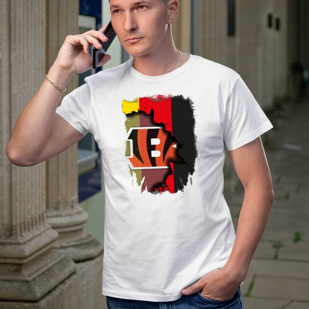 Show off your love for both the Cincinnati Bengals and Germany with this unique fan-made graphic T-shirt. Perfect for die-hard football fans or anyone who appreciates a stylish fusion of cultures, this shirt is ideal for casual outings, themed events, or simply lounging around. Printed in the USA on a high-quality Gildan 5000 Unisex T-Shirt, it combines comfort and durability with a design that stands out.
