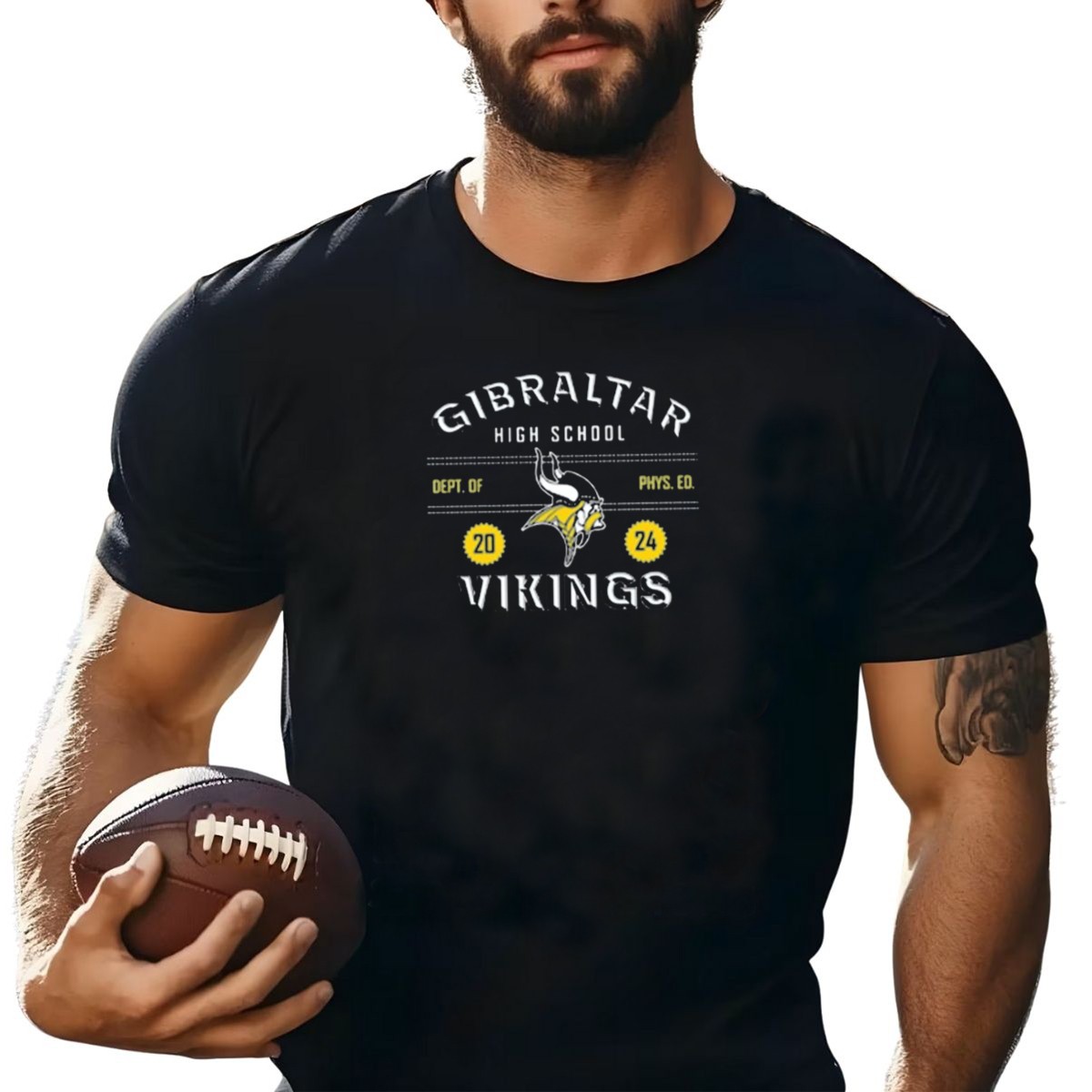 Show your pride for Gibraltar High School with our exclusive 2024 Vikings T-Shirt, perfect for students, alumni, and fans alike. Made for casual wear and themed events, this shirt is a must-have for anyone who wants to represent their school spirit in style. Featuring a unique fan-made design printed right here in the USA, it combines comfort and quality, making it ideal for daily wear in any season.