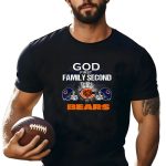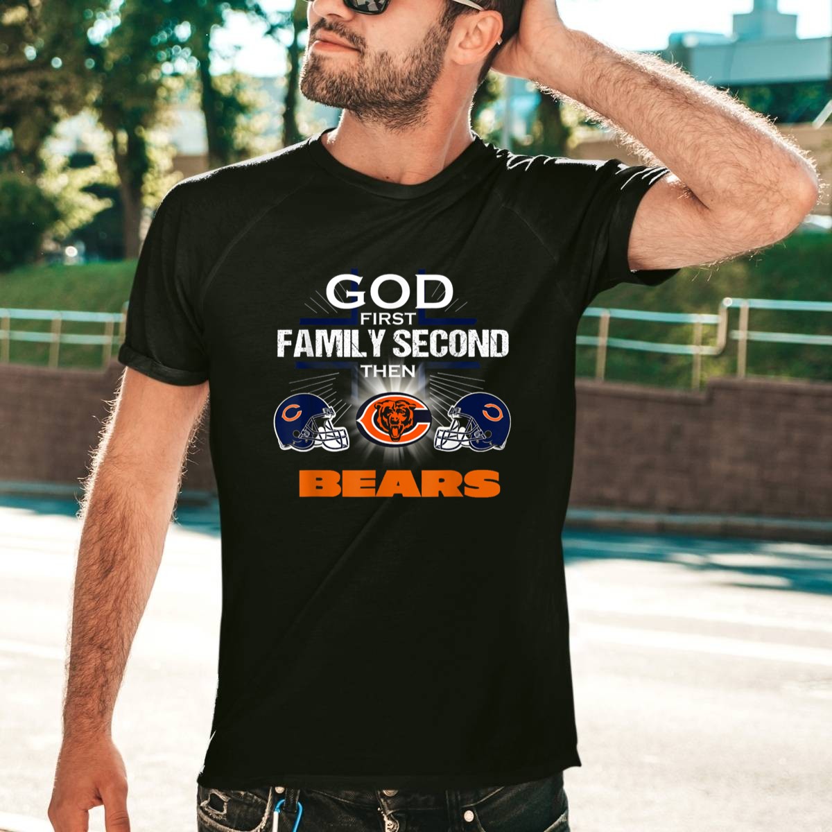 Show off your love for family and the Chicago Bears with this unique fan-made design that perfectly encapsulates your priorities: God First, Family Second, and of course, your favorite team. This Gildan 5000 Unisex T-Shirt is ideal for casual wear, themed events, or just lounging around while cheering for the Bears. With its soft, durable, and breathable fabric, this classic fit tee is your go-to choice for any occasion, making it a must-have for devoted fans.