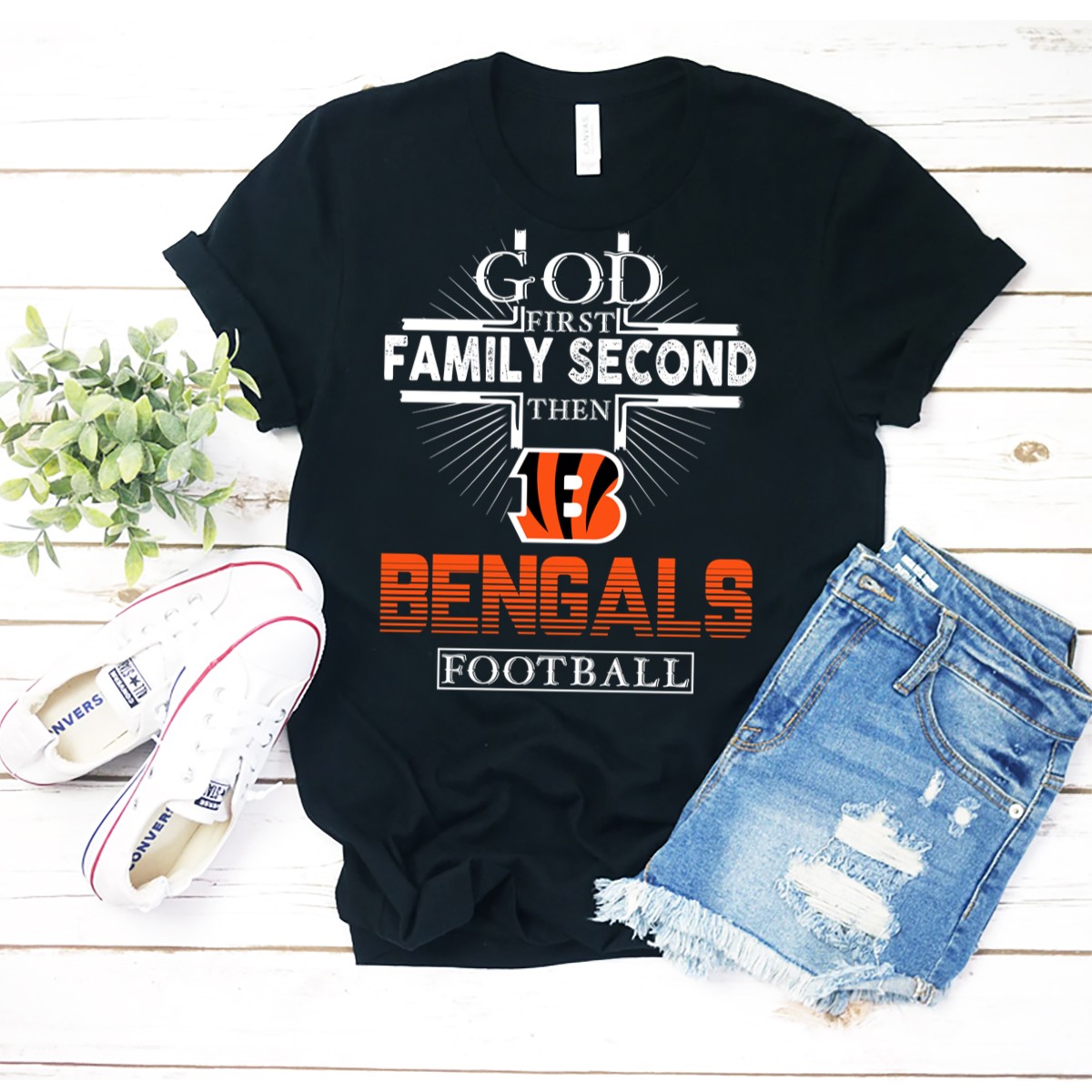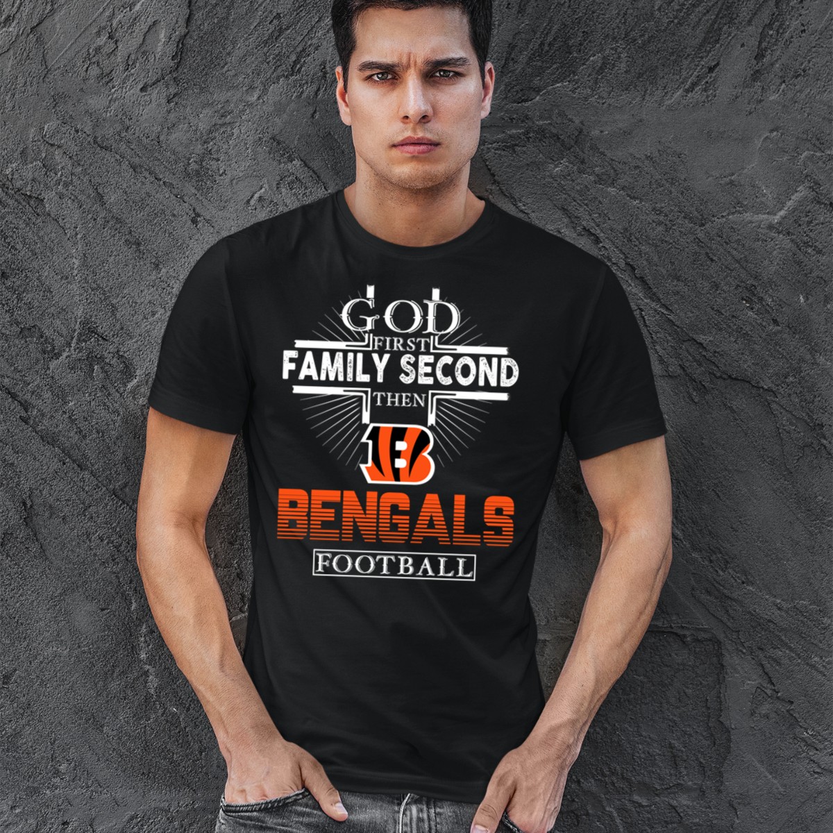 Show off your love for family and football with our “God First Family Second Then Cincinnati Bengals” T-Shirt! Perfect for die-hard Bengals fans, this shirt combines faith and team spirit, making it an ideal choice for casual outings, game days, or themed events. Crafted with a fan-made design, this shirt is not just a piece of clothing—it’s a statement of your values and loyalty. Stand out and support your team in style!
