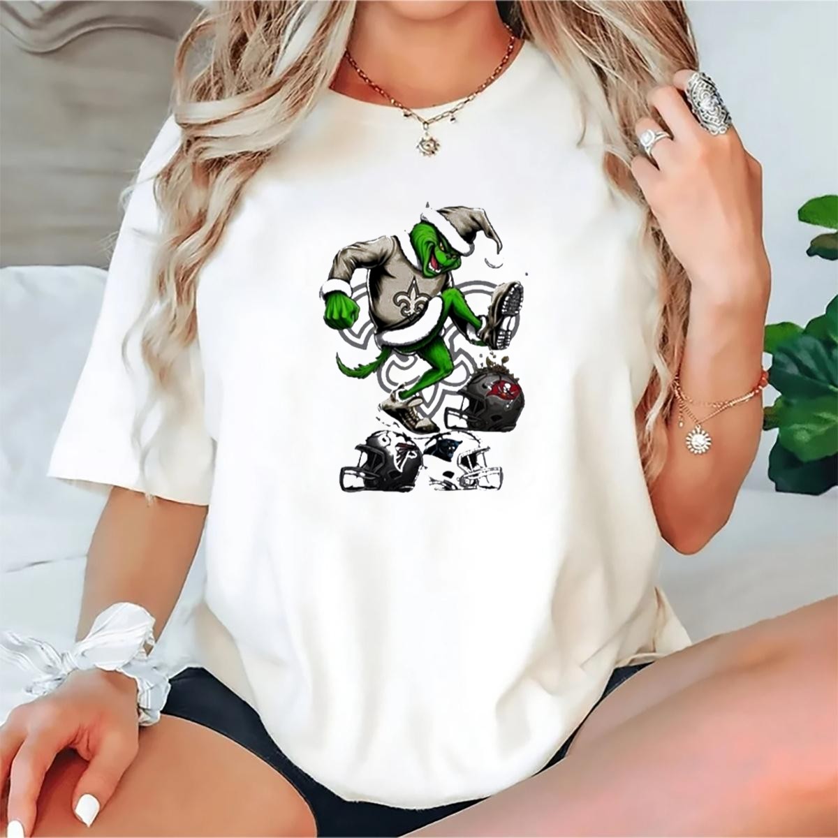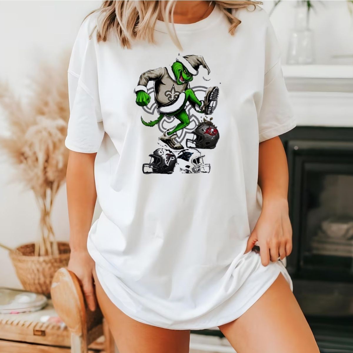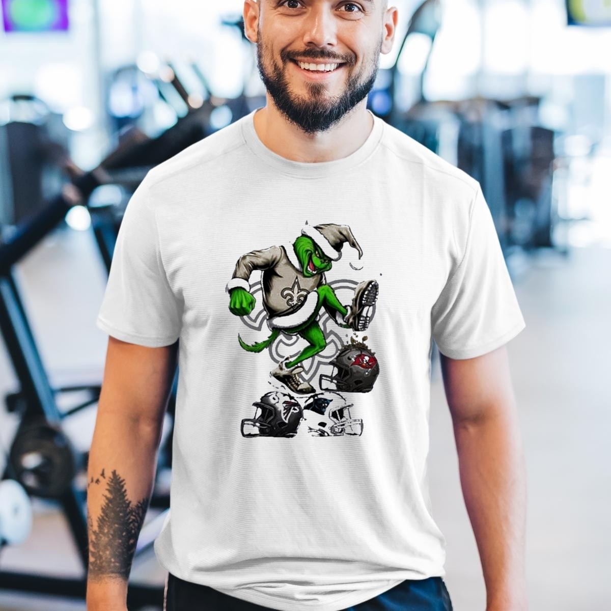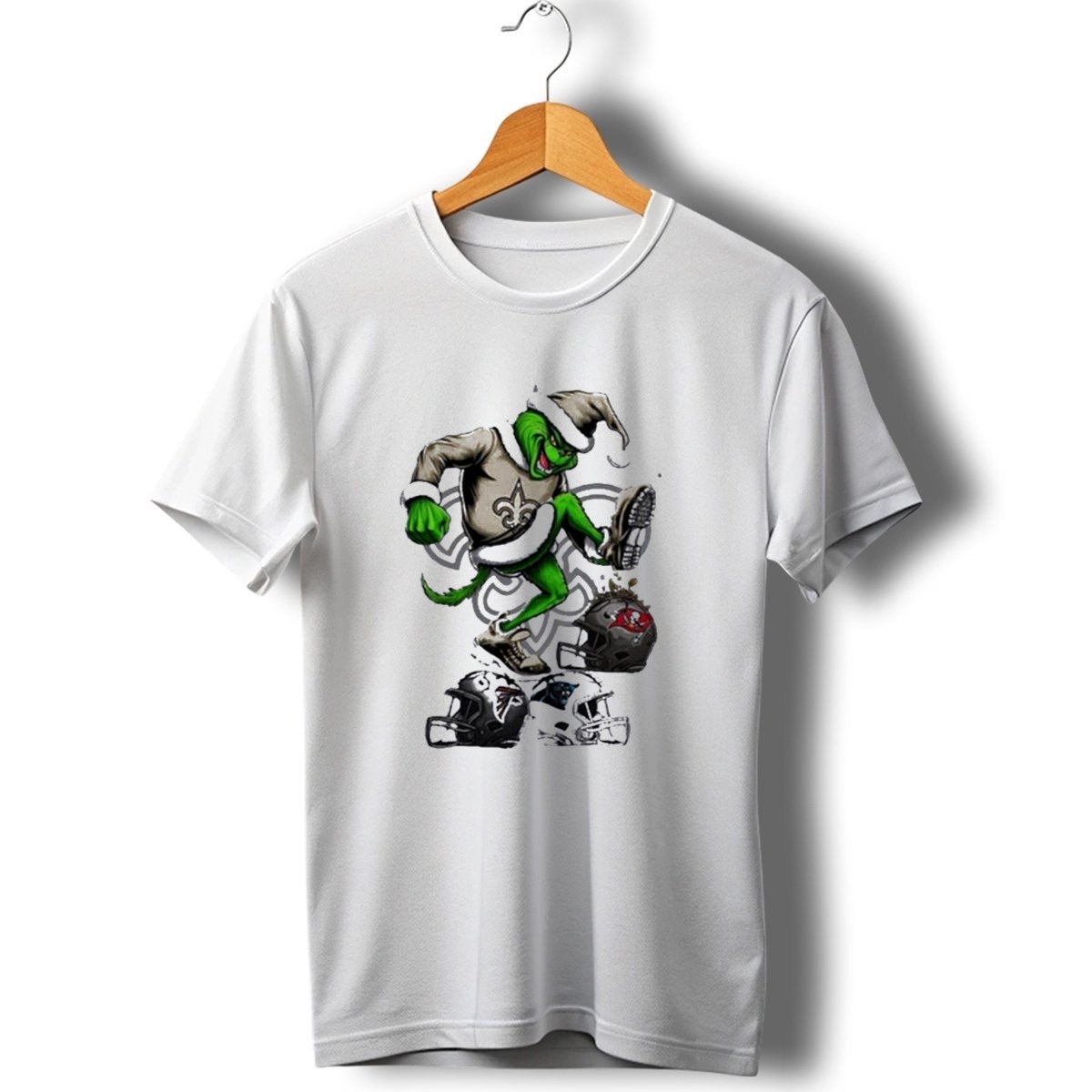 Show off your love for the New Orleans Saints in a fun and unique way with our “Grinch Crushes Rival NFL Teams” T-shirt! Perfect for passionate fans and those who enjoy a playful twist on sports apparel, this shirt is ideal for casual outings, game days, or themed events. Made with a fan-made design printed right here in the USA, it’s a standout piece that combines team spirit with humor, making it a must-have for any Saints supporter.