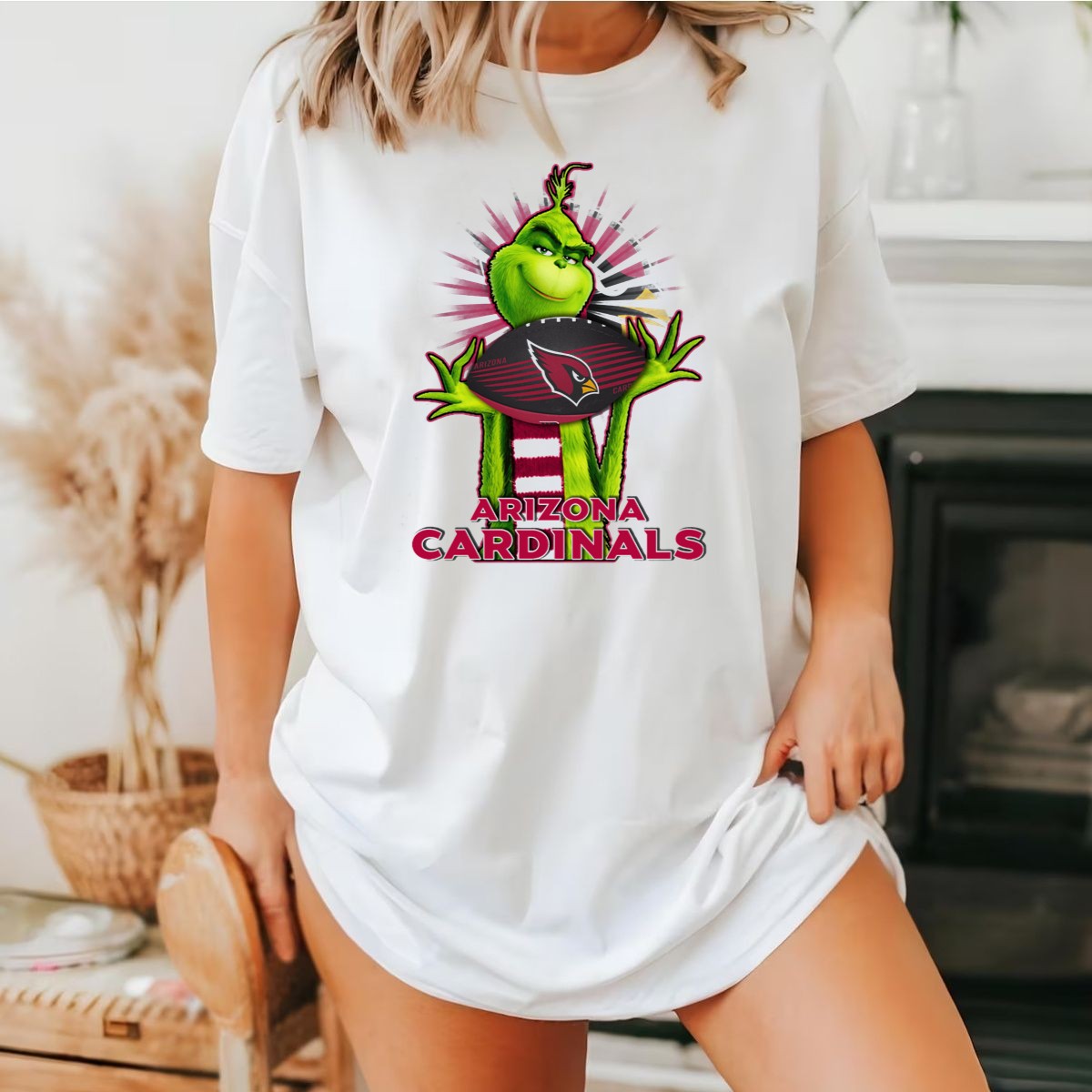 Embrace the festive spirit with our Grinch Holding Arizona Cardinals Football T-Shirt, perfect for fans who want to showcase their love for both the holiday season and their favorite team. This playful design is ideal for casual outings, game days, or themed events, making it a must-have addition to your wardrobe. Crafted for comfort and style, this shirt is not just a statement piece; it’s a celebration of fun and team spirit, printed right here in the USA.