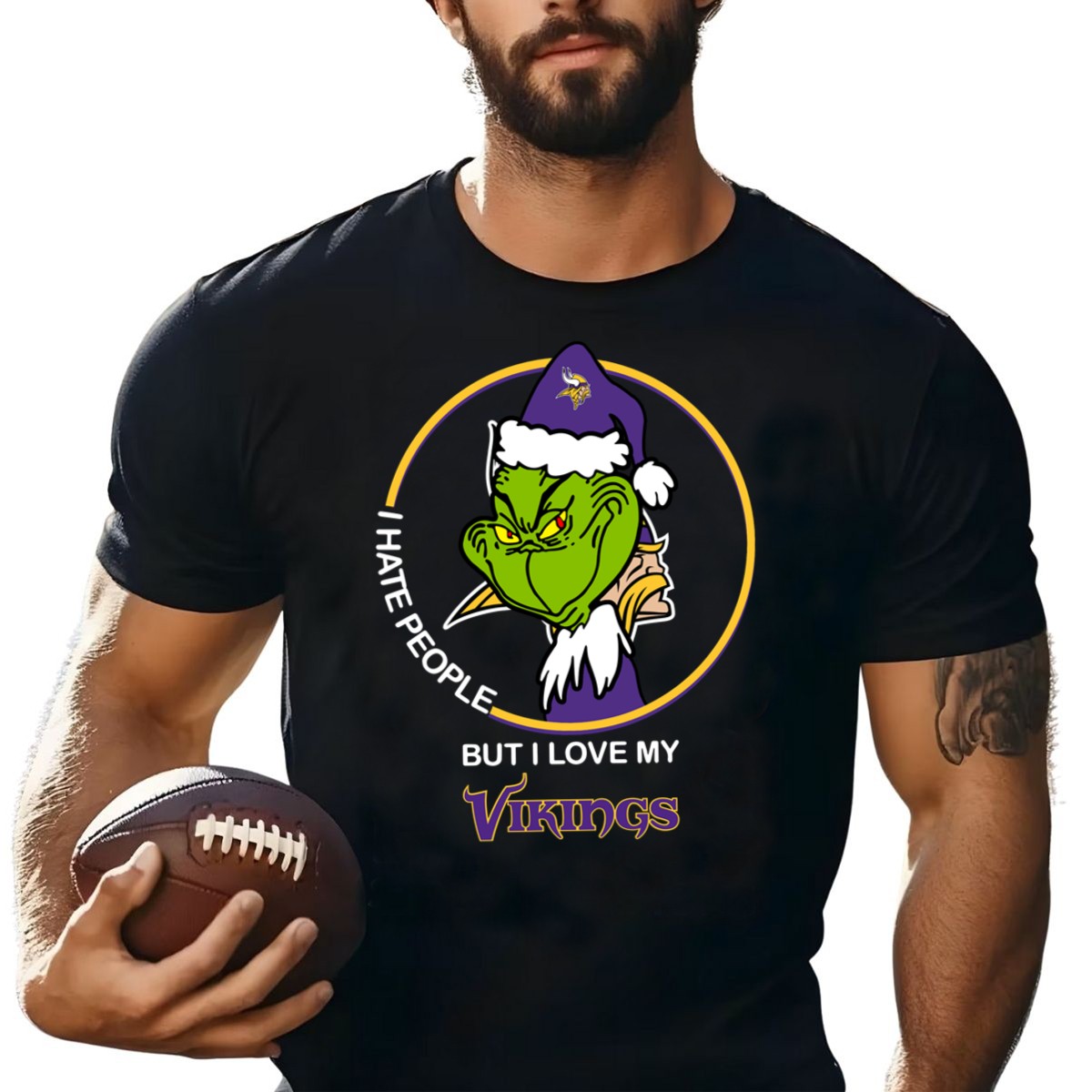 Show off your team spirit with the Grinch I Hate People But I Love My Minnesota Vikings shirt! This fun and quirky design is perfect for die-hard Vikings fans who enjoy a playful twist on their love for the game. Ideal for casual outings, themed events, or just lounging at home, this shirt is a must-have for anyone looking to express their passion in a unique way. With the design proudly printed in the USA, it’s a standout piece that combines comfort and humor.