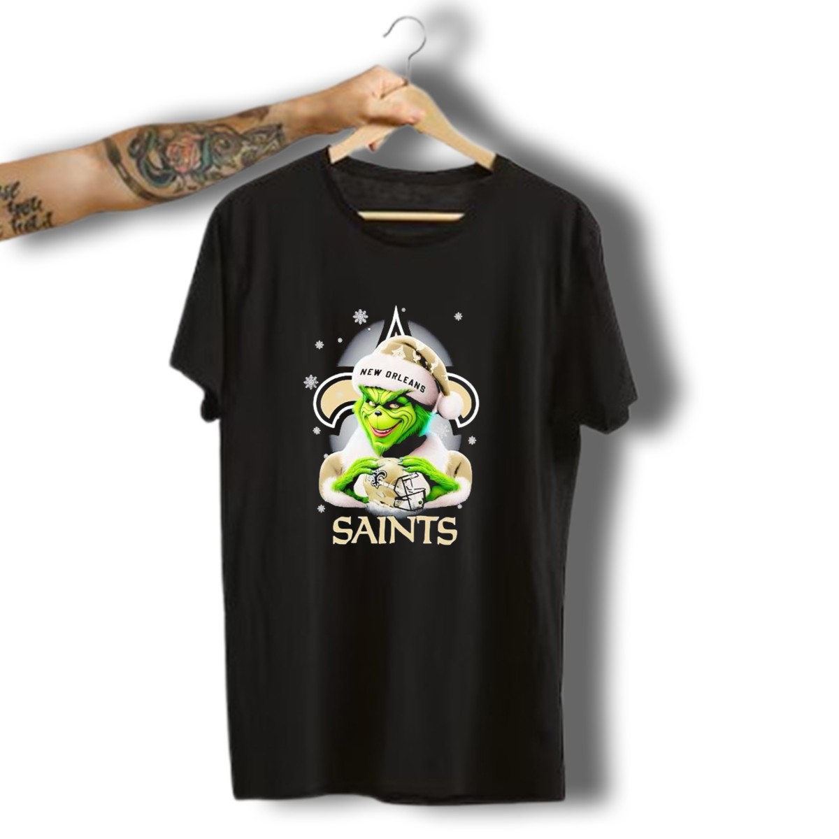 Celebrate the holiday season with a twist of fun and football in our Grinch New Orleans Saints Christmas Snowflakes T-Shirt! Perfect for die-hard Saints fans and holiday enthusiasts alike, this shirt brings together the joy of Christmas and the thrill of the game. Whether you’re heading to a themed party, a casual get-together, or just lounging at home, this unique fan-made design, printed in the USA, will keep you stylish and comfortable all season long.