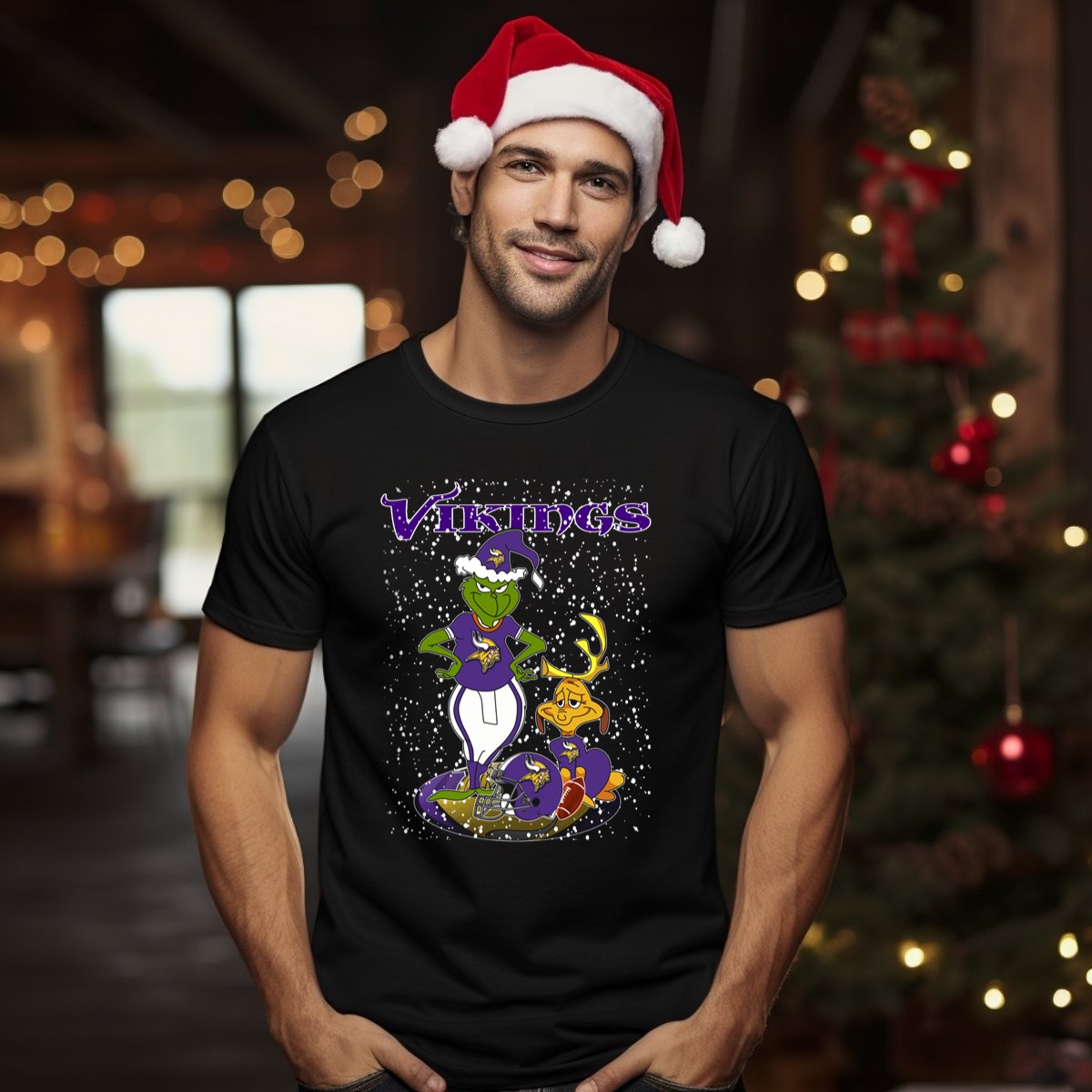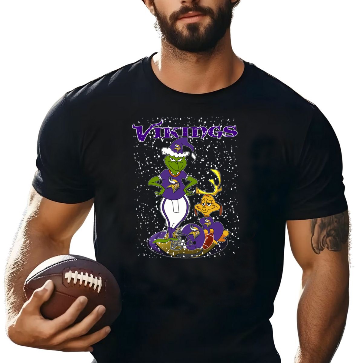 Get into the holiday spirit with our Grinchxmas Minnesota Vikings Football T-Shirt, perfect for fans who love to showcase their team pride in a fun and festive way. This unisex tee combines the whimsical charm of the Grinch with the excitement of football, making it an ideal choice for casual outings, themed events, or daily wear during the holiday season. Made with care in the USA, this fan-made design is sure to bring smiles to fellow fans and spread holiday cheer wherever you go!