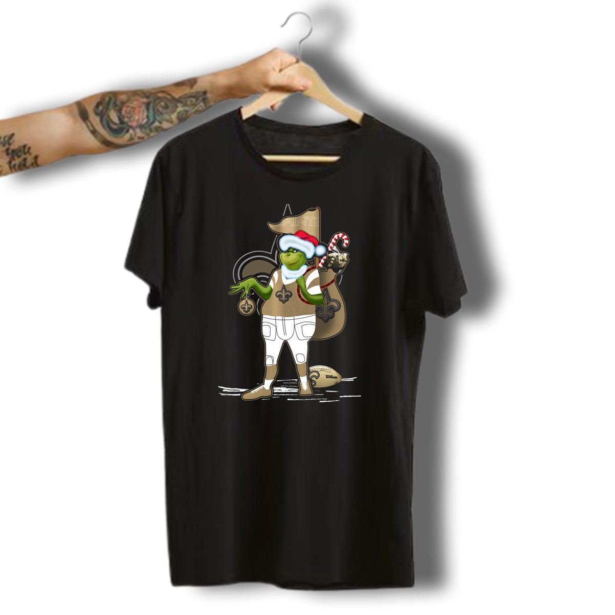 Get into the holiday spirit while showing off your love for the New Orleans Saints with our Grinchxmas T-shirt! This fan-made design features a whimsical Grinch wearing a Santa hat, perfectly paired with the iconic Fleur De Lis. Ideal for casual outings, themed events, or daily wear, this shirt is a fun way to celebrate the season while supporting your team. Crafted for comfort and style, it’s a must-have for any die-hard Saints fan looking to spread some holiday cheer!