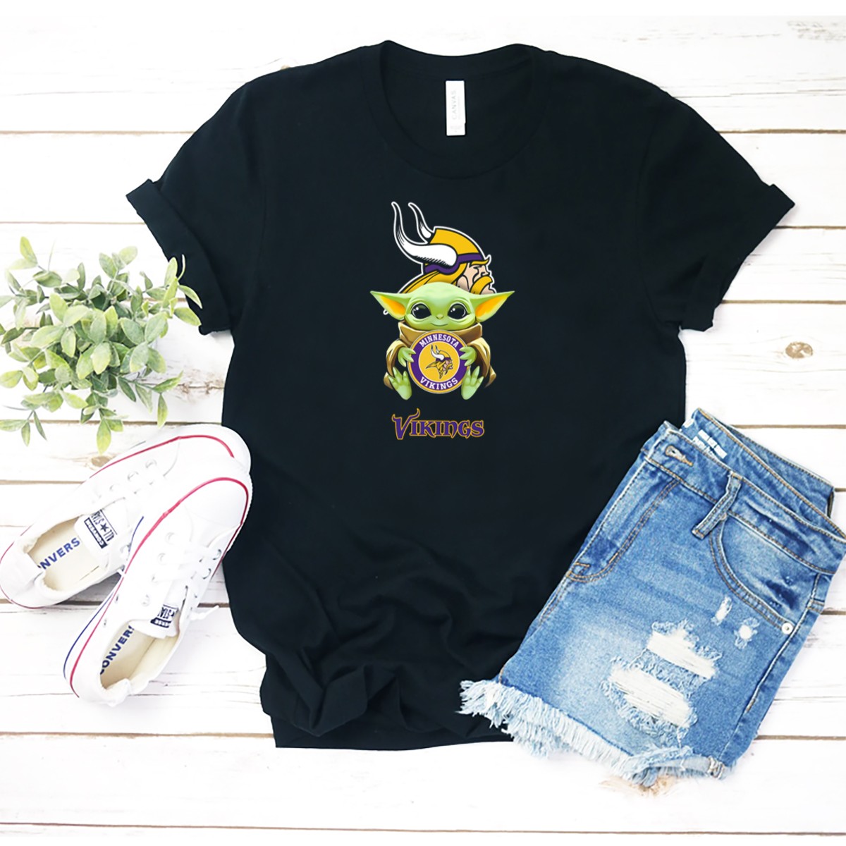 Show your love for the Minnesota Vikings and the adorable Grogu with our fan-made Grogu Hug Minnesota Vikings T-Shirt! Perfect for die-hard football fans and Star Wars enthusiasts alike, this shirt combines comfort and style, making it an ideal choice for casual outings, game days, or themed events. With its unique design printed in the USA, you can wear your fandom proudly while enjoying everyday activities in all seasons.