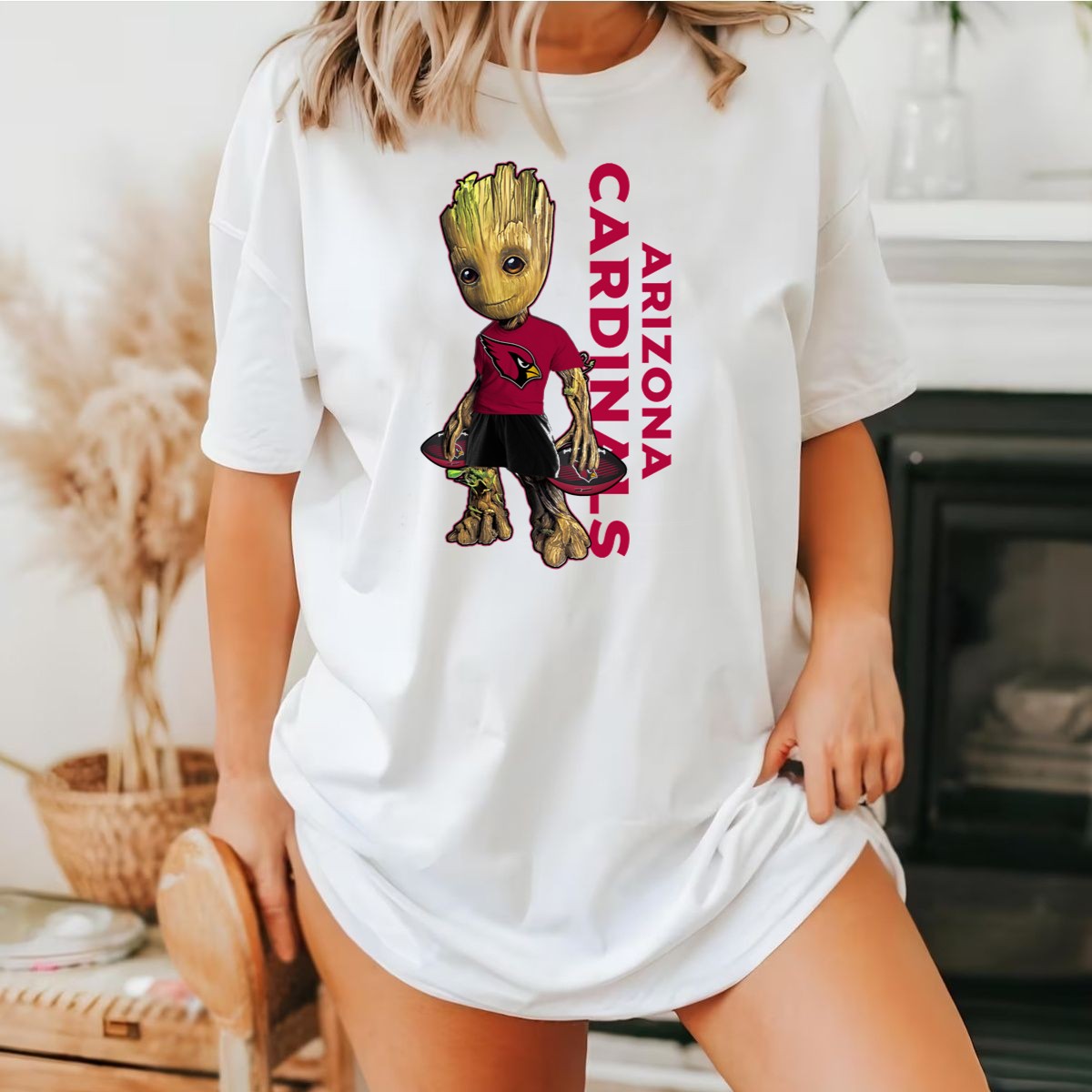 Show your love for the Arizona Cardinals and your favorite Guardians of the Galaxy character with this unique fan-made Groot T-shirt! Perfect for die-hard NFL fans and movie lovers alike, this tee is ideal for casual outings, themed events, or just lounging at home while cheering for your team. Made with comfort and style in mind, this shirt combines your passion for football with a fun, artistic twist, making it a must-have addition to your wardrobe.