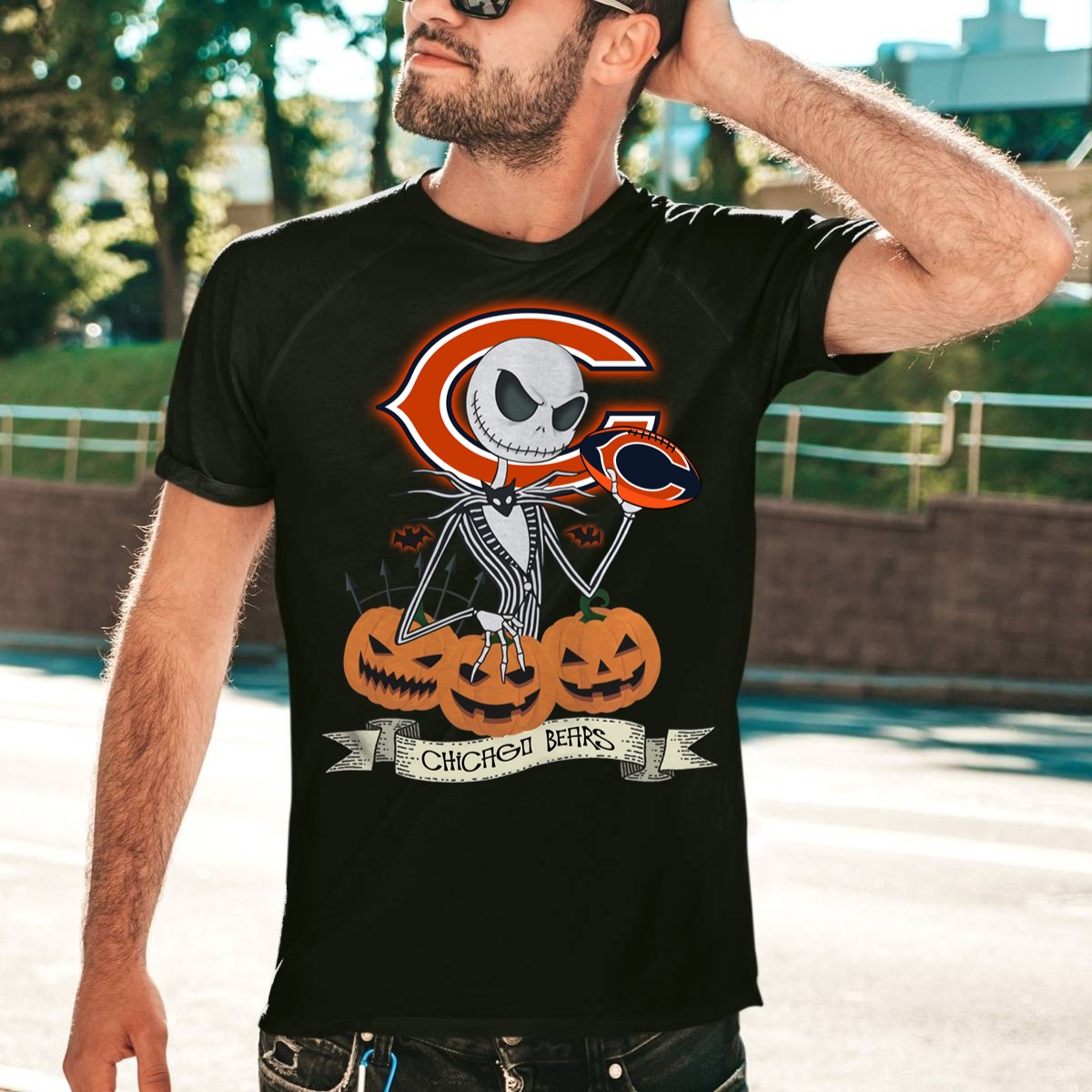 Halloween Chicago Bears Jack Skellington T-Shirt