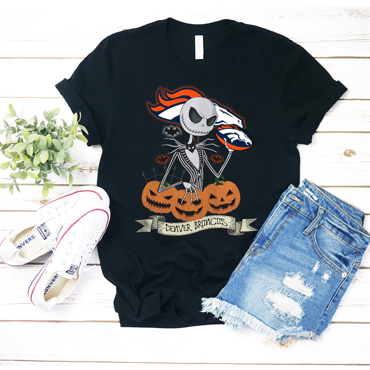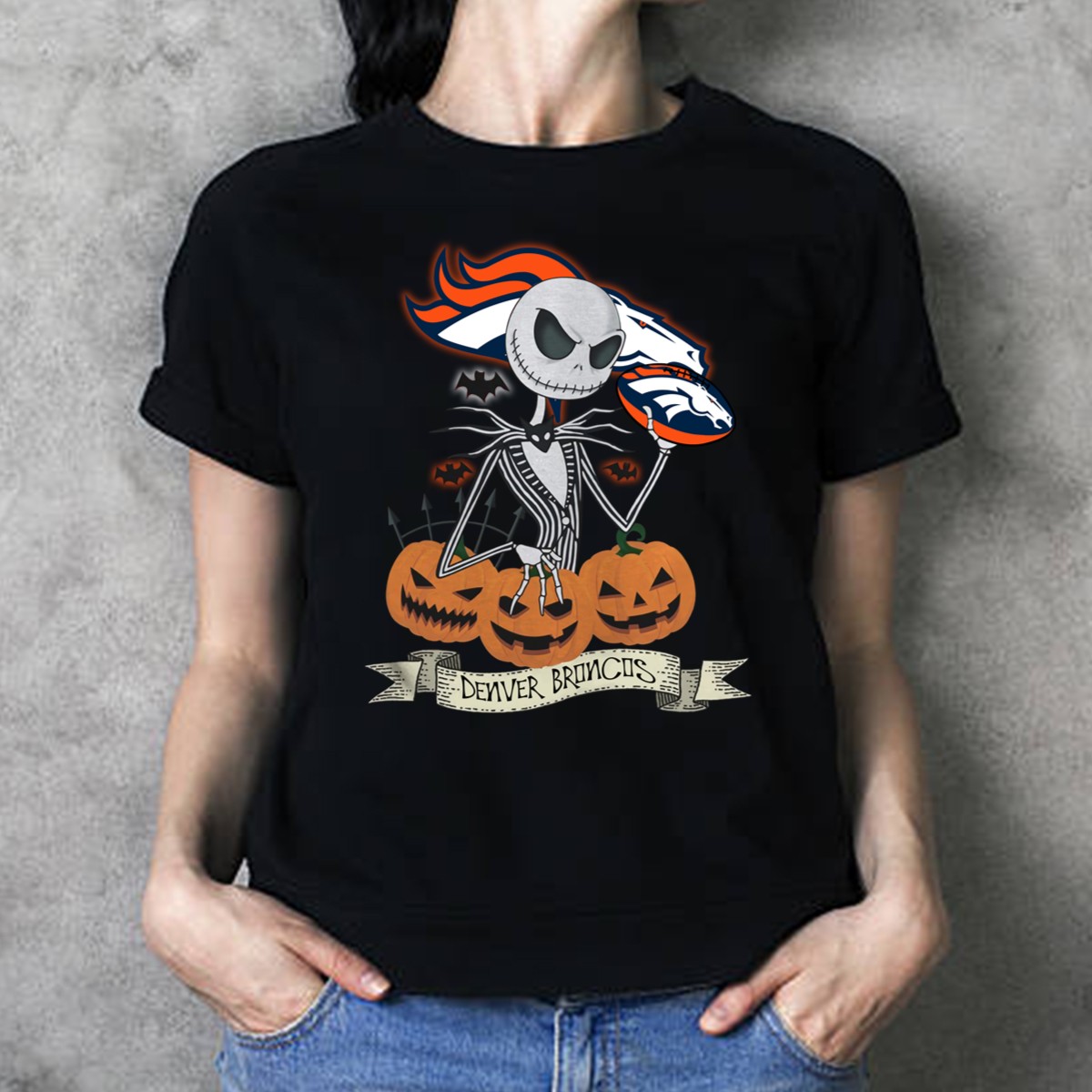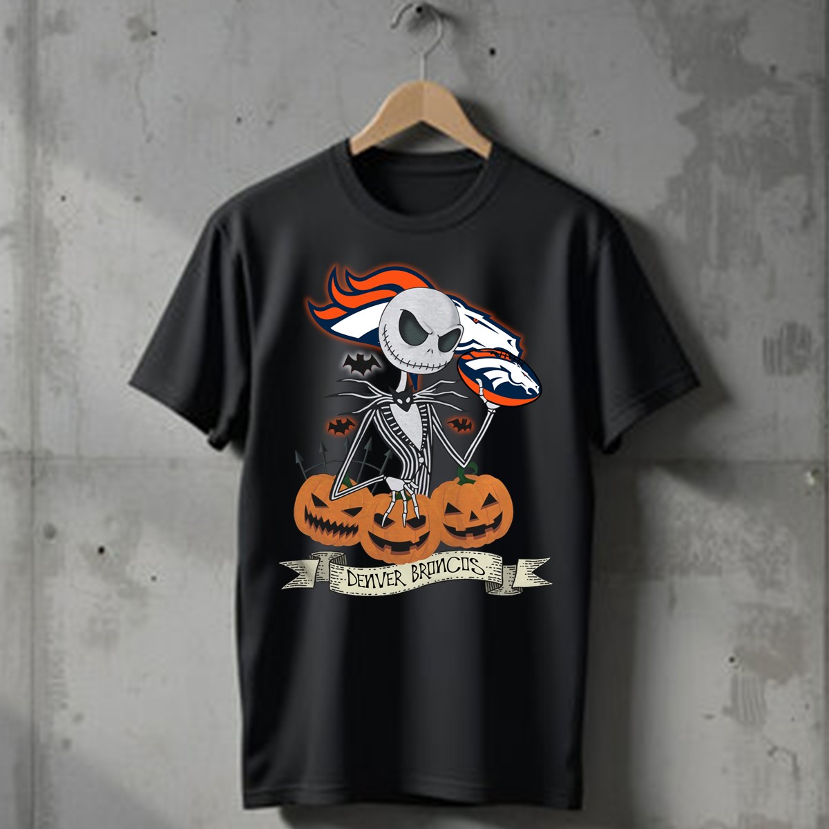 Celebrate Halloween in style with our fan-made Denver Broncos Jack Skellington T-Shirt! Perfect for die-hard Broncos fans and Disney lovers alike, this shirt features a unique graphic that combines the spooky spirit of Halloween with the beloved NFL team. Ideal for casual outings, themed events, or just lounging at home, this T-shirt is a must-have for those who want to showcase their team spirit while embracing the Halloween season. With its comfortable fit and soft fabric, you’ll be ready to cheer on your team in ultimate comfort!
