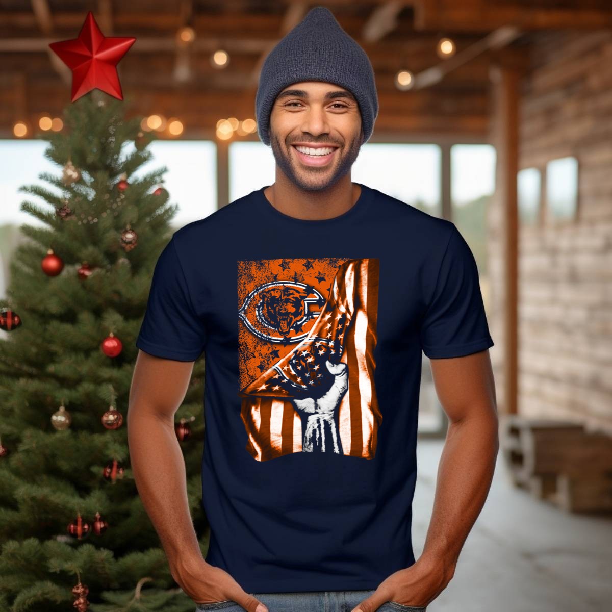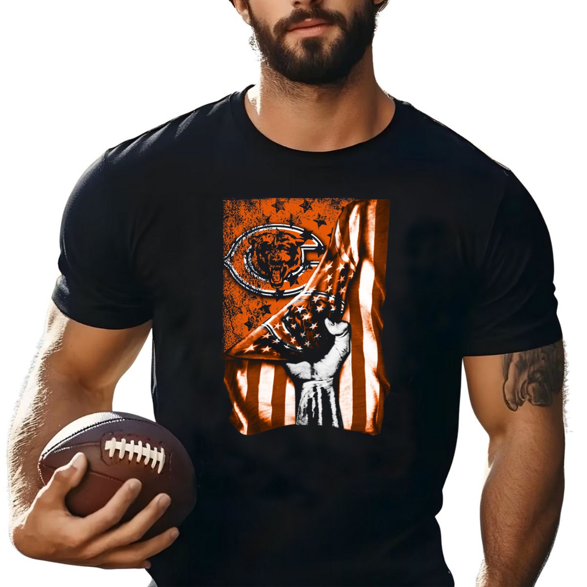 Celebrate your love for the Chicago Bears with our Hand Lifting American Flag T-Shirt! This unique fan-made design is perfect for die-hard supporters who want to showcase their team spirit while enjoying the comfort of a classic fit. Ideal for casual outings, themed events, or daily wear, this shirt lets you proudly display your allegiance to both your team and your country, making it a must-have for any Bears fan.