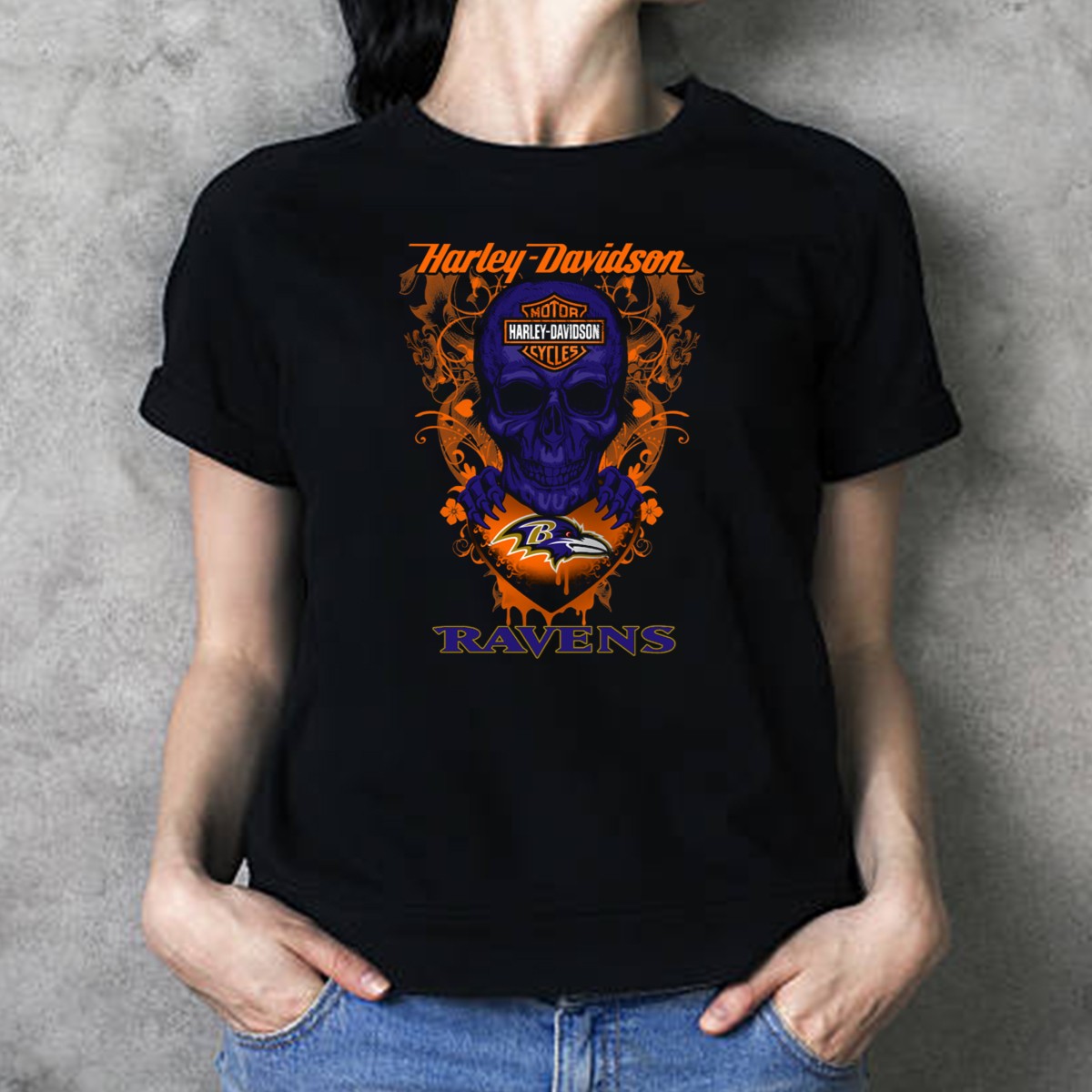 Harley Davidson Baltimore Ravens Skull Motor Cycles T-Shirt