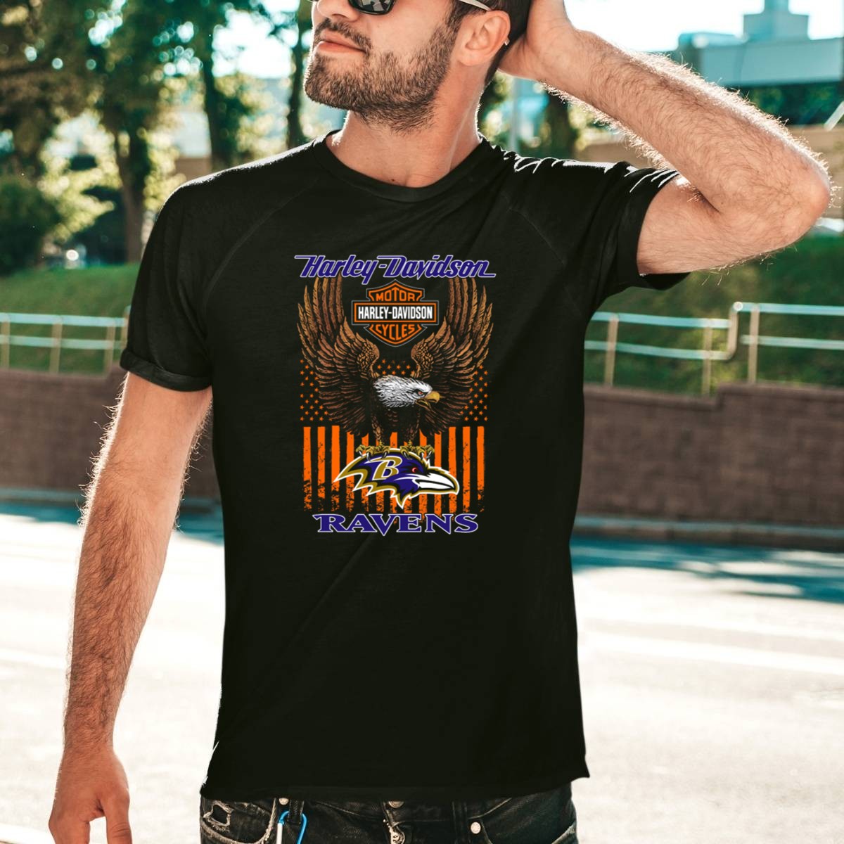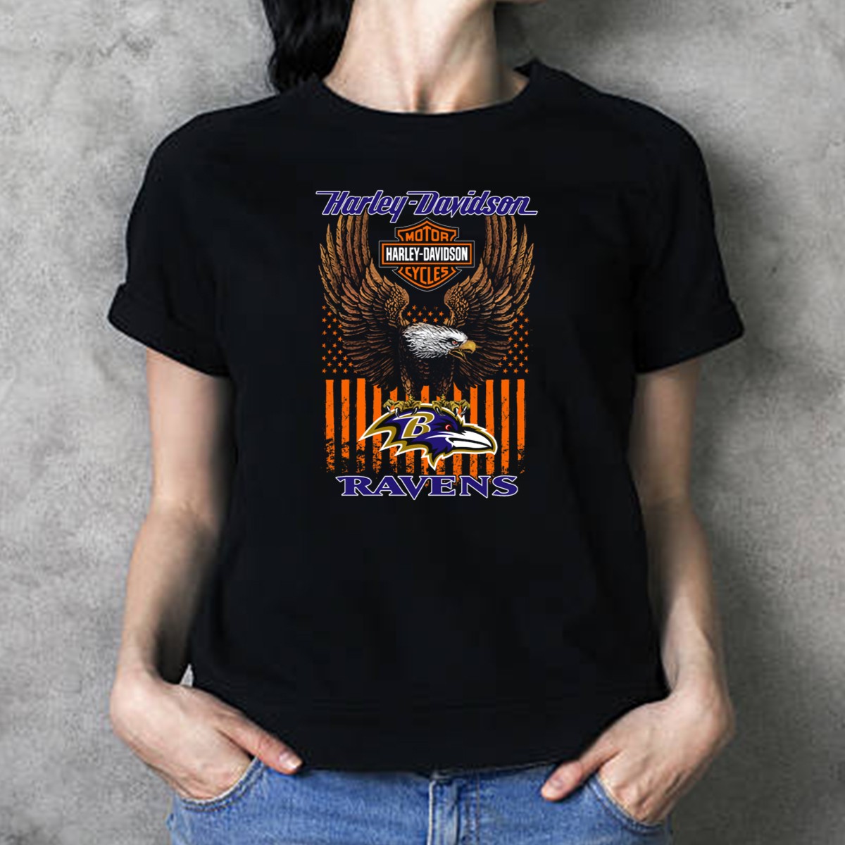 Harley Davidson Motor Cycles Baltimore Ravens Eagle American Flag T-Shirt