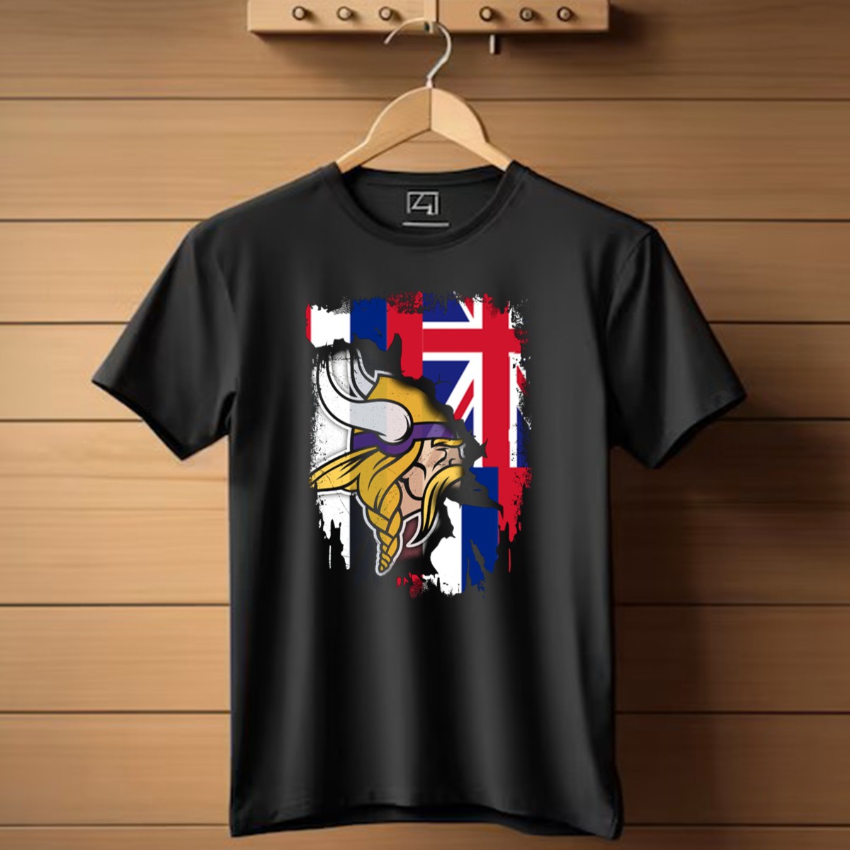 Embrace a unique blend of cultures with our Hawaii Union Jack With Vikings Head T-Shirt! This fan-made design showcases a captivating graphic that combines the vibrant spirit of Hawaii with the fierce heritage of the Vikings, making it a perfect choice for those who want to stand out. Ideal for casual outings, themed events, or just daily wear, this shirt is a stylish way to express your individuality and love for bold designs. Plus, it’s printed right here in the USA, ensuring high quality and attention to detail.