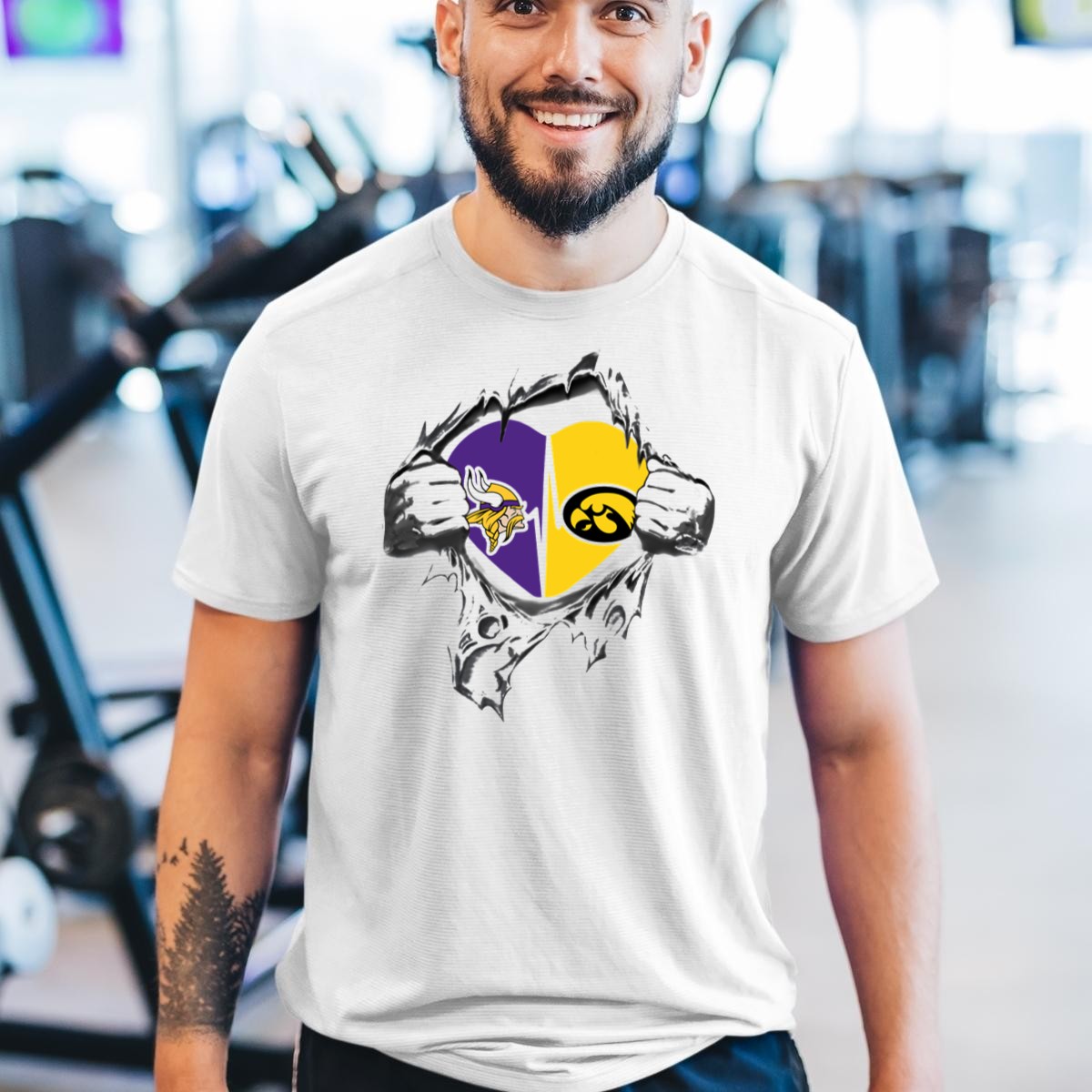 Show off your team spirit with our exclusive Hawkeyes Vikings Heart Split T-Shirt, designed for passionate fans who love to stand out. This unique fan-made graphic features a striking heart split design with ripped hands, making it perfect for casual outings, themed events, or daily wear. Crafted for comfort and style, this T-shirt is ideal for all-season wear, ensuring you can showcase your love for the game anytime, anywhere!