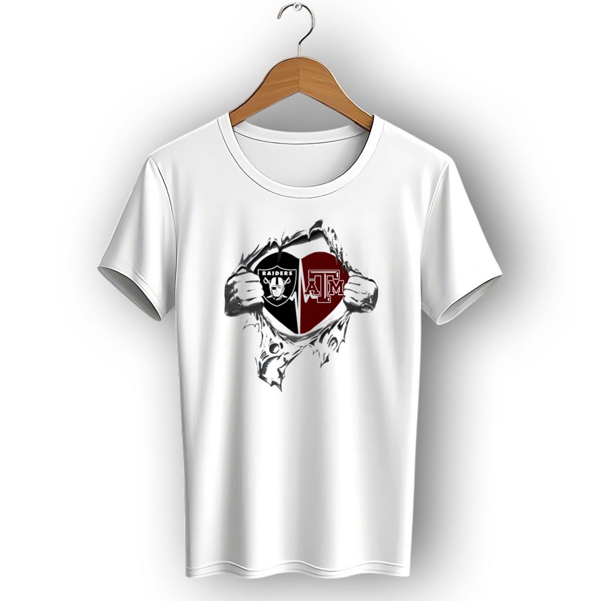 Show your support for the Aggies in style with our Heart Of Raiders Aggies Split T-Shirt! This fan-made design is perfect for die-hard fans who want to represent their team during casual outings, themed events, or daily wear. Crafted with comfort in mind, this shirt is ideal for all seasons and will quickly become a staple in your wardrobe. Proudly printed in the USA, it showcases your loyalty and passion for the game while ensuring you look great doing it.