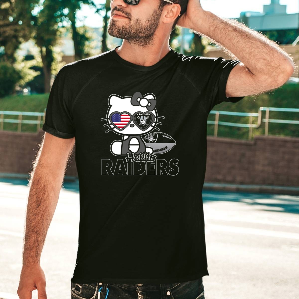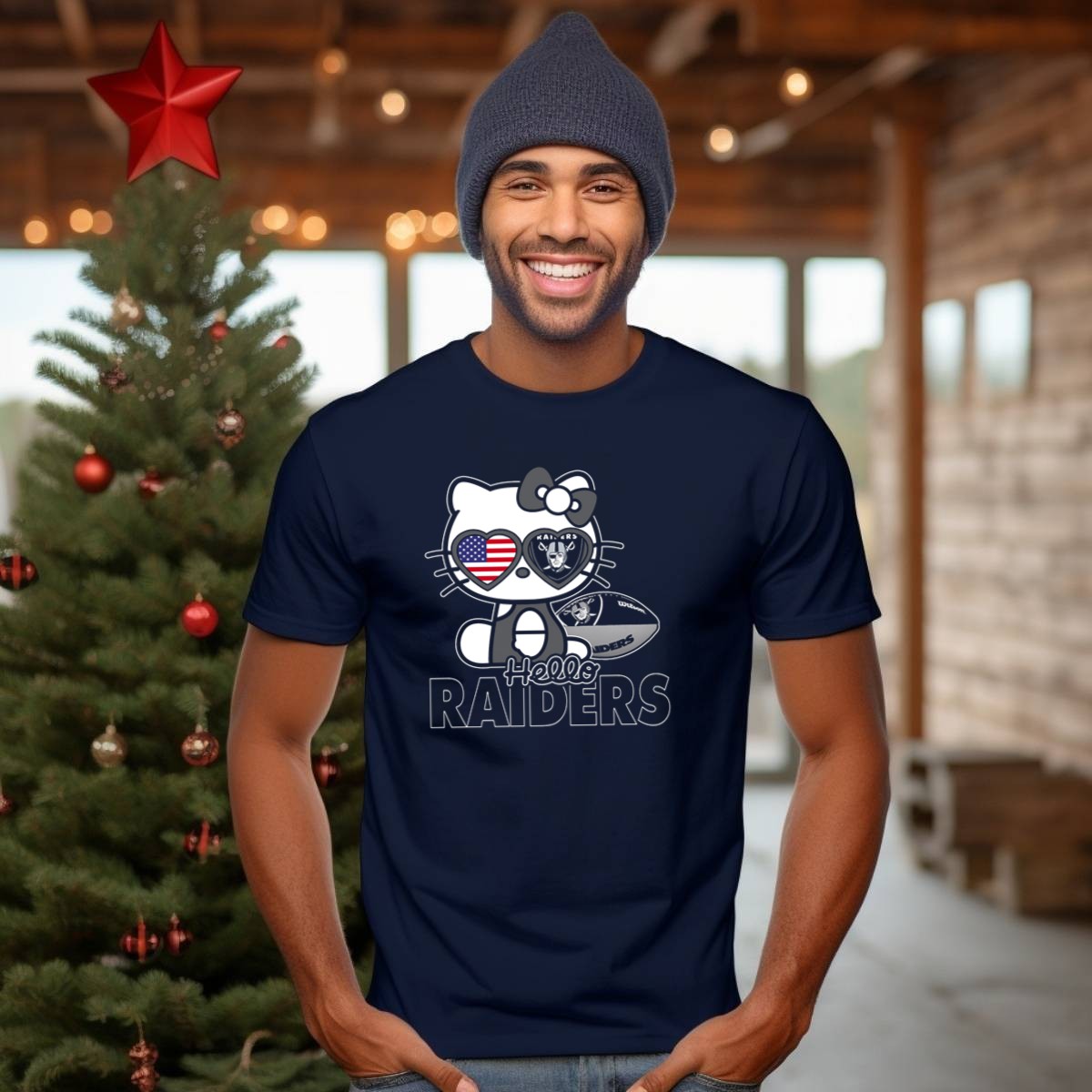 Show off your love for the iconic Hello Kitty and your team spirit with our Hello Kitty Raiders American Flag Heart Glasses and Football T-Shirt! This fun, fan-made design is perfect for all ages, making it an ideal choice for casual outings, themed events, or just lounging at home. Crafted for comfort and style, this shirt lets you express your passion for football and Hello Kitty in a unique way, all while enjoying the softness of 100% cotton.
