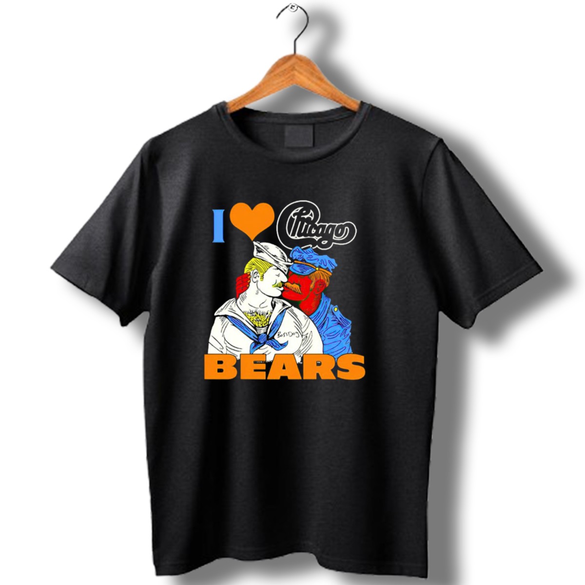 I Love Chicago Bears Bossdog Sailor And Cop Embrace T Shirt