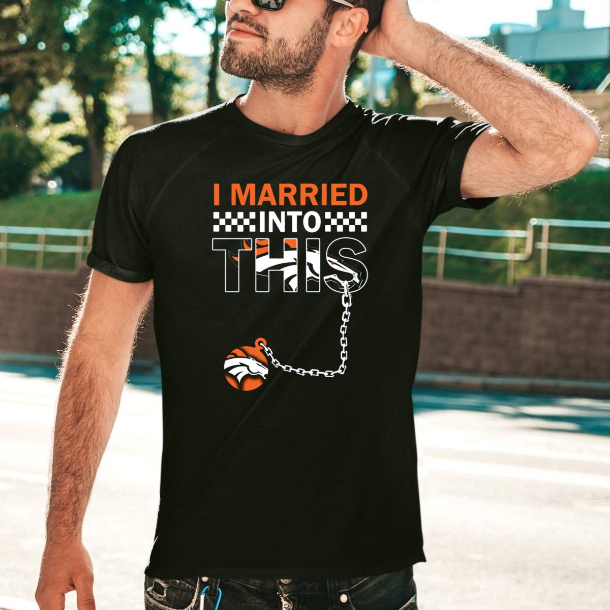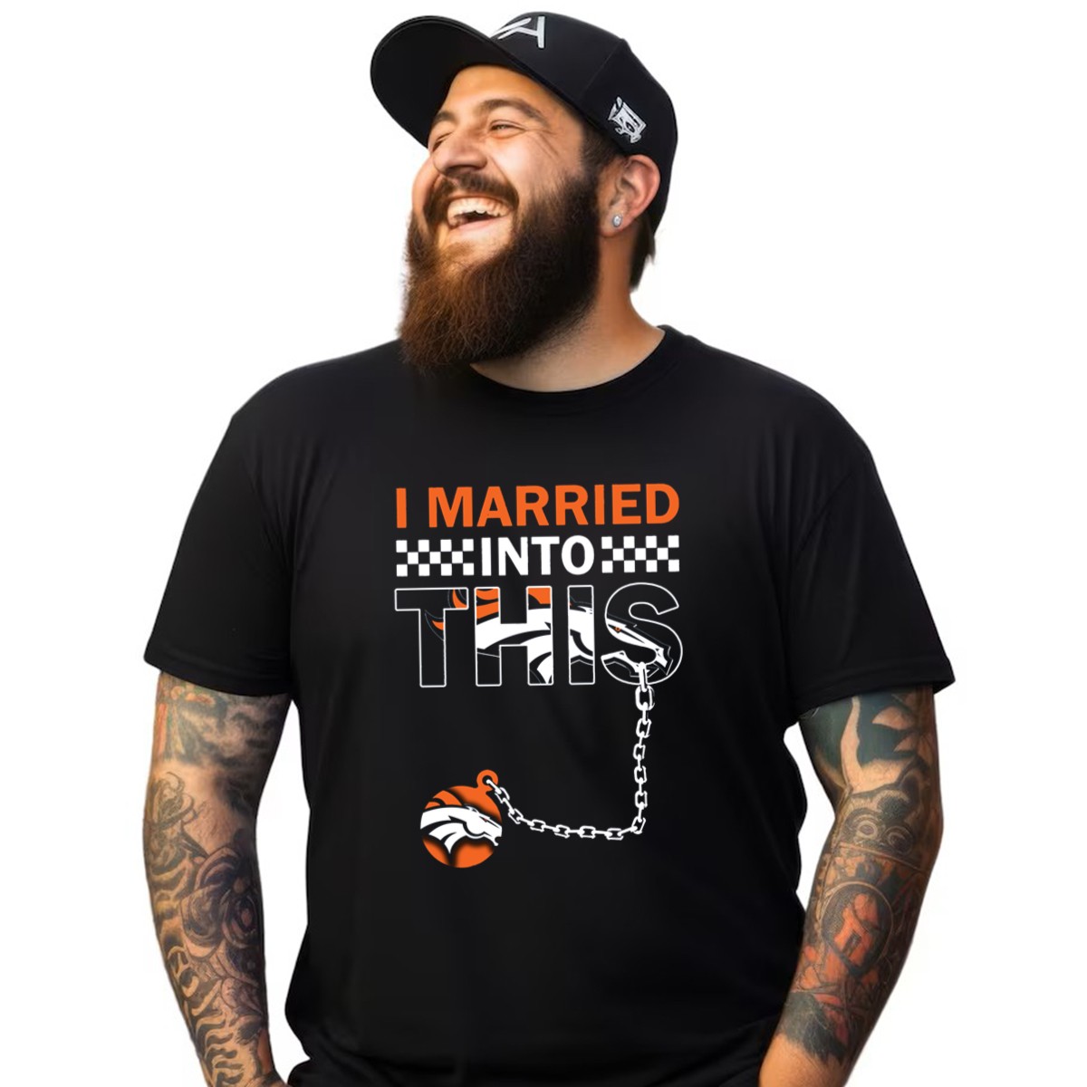 Show your love for the Denver Broncos with our “I Married Into This” T-shirt, perfect for any passionate fan or proud partner! This fan-made design celebrates the joy of being part of the Broncos family, making it an ideal choice for casual outings, themed events, or simply cheering on your team from home. Crafted for comfort and style, this T-shirt is a must-have for every dedicated supporter.
