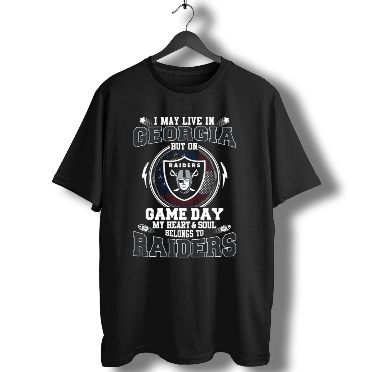 I May Live In Georgia But On Game Day My Heart And Soul Belongs To Raiders T-Shirt
