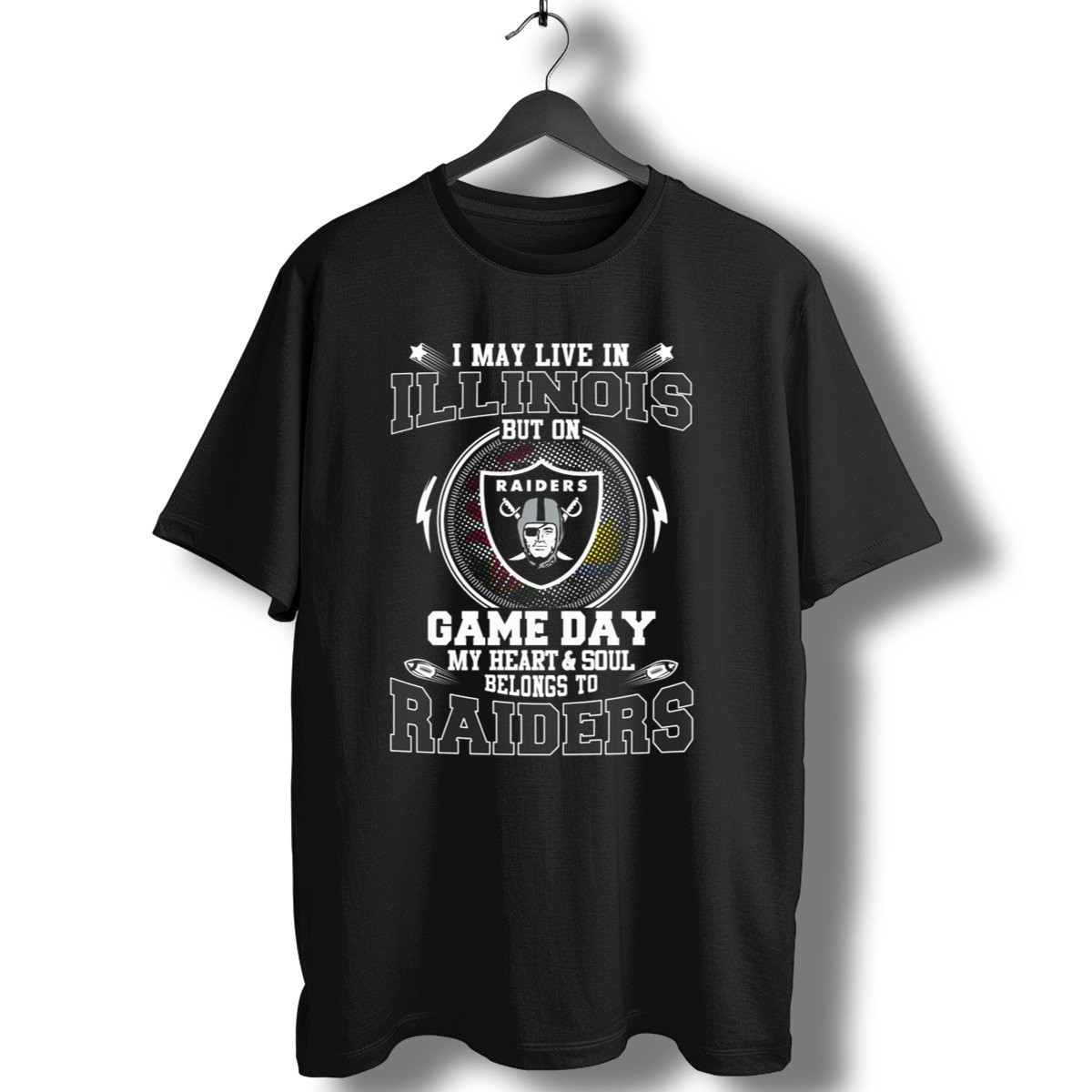 I May Live In Illinois But On Game Day My Heart And Soul Belongs To Raiders T-Shirt
