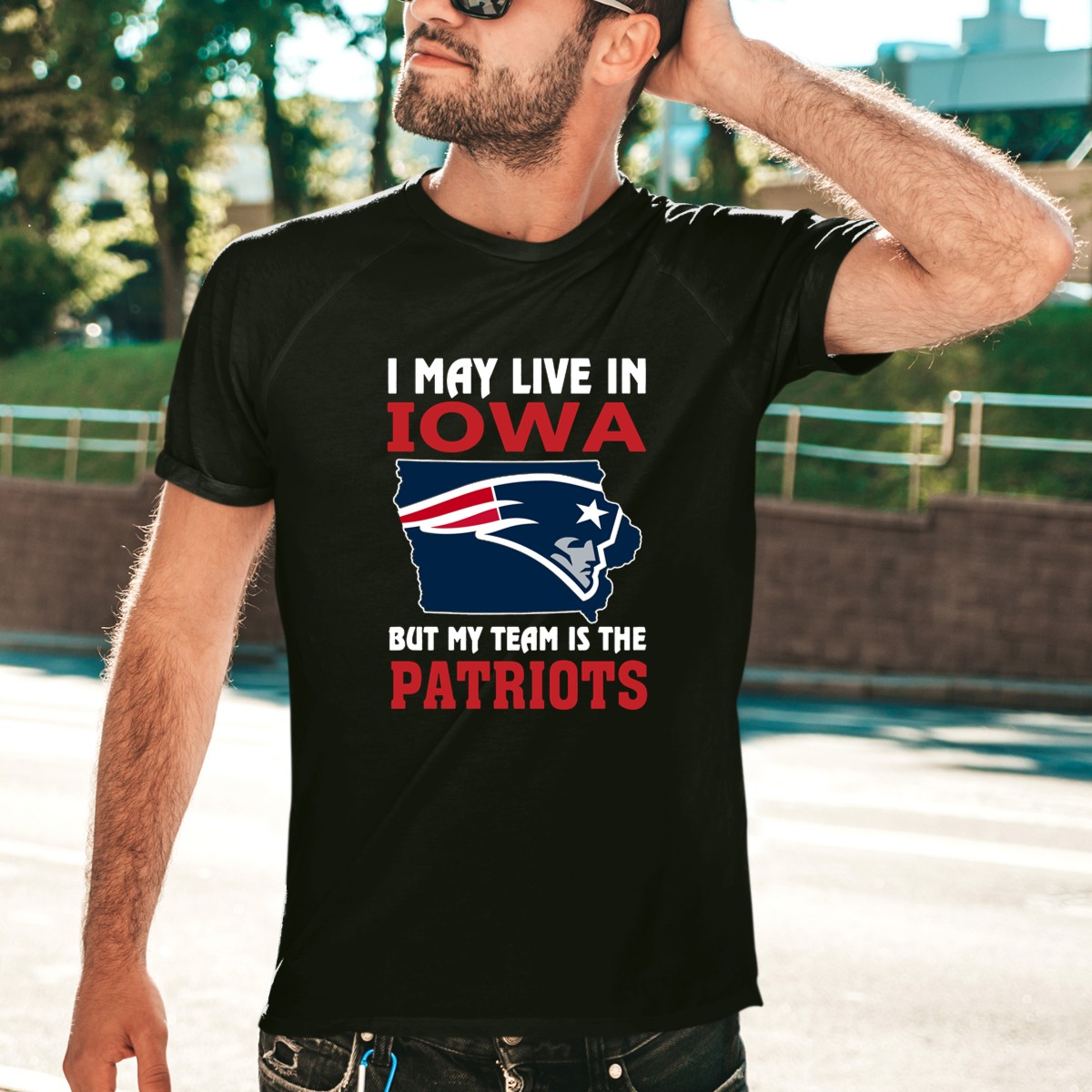 Show your unwavering support for the Patriots while proudly representing your Iowa roots with our “I May Live In Iowa But My Team Is The Patriots” T-shirt. Perfect for die-hard fans, this shirt is ideal for casual outings, themed events, or daily wear. Made with a fan-made design and printed in the USA, it combines comfort and style for every football enthusiast.
