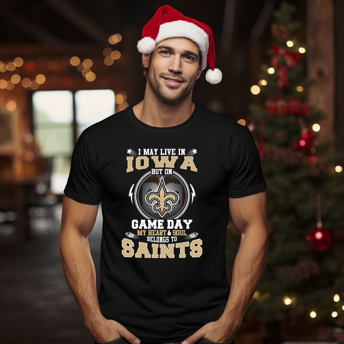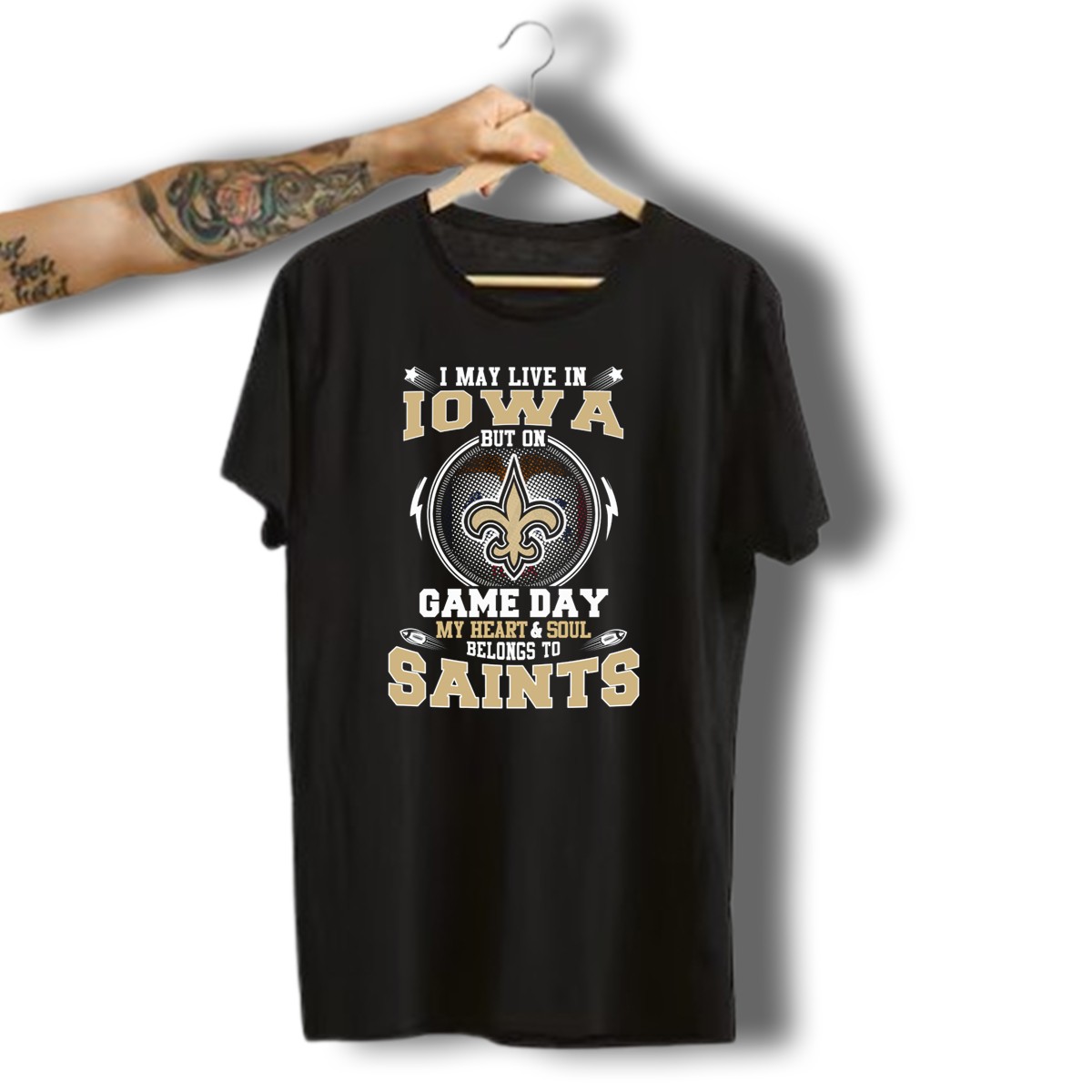 I May Live In Iowa But On Game Day My Heart And Soul Belongs To Saints T Shirt