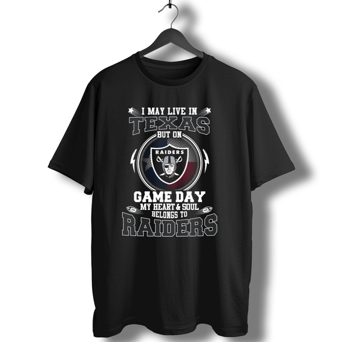 I May Live In Texas But On Game Day My Heart And Soul Belongs To Raiders T-Shirt