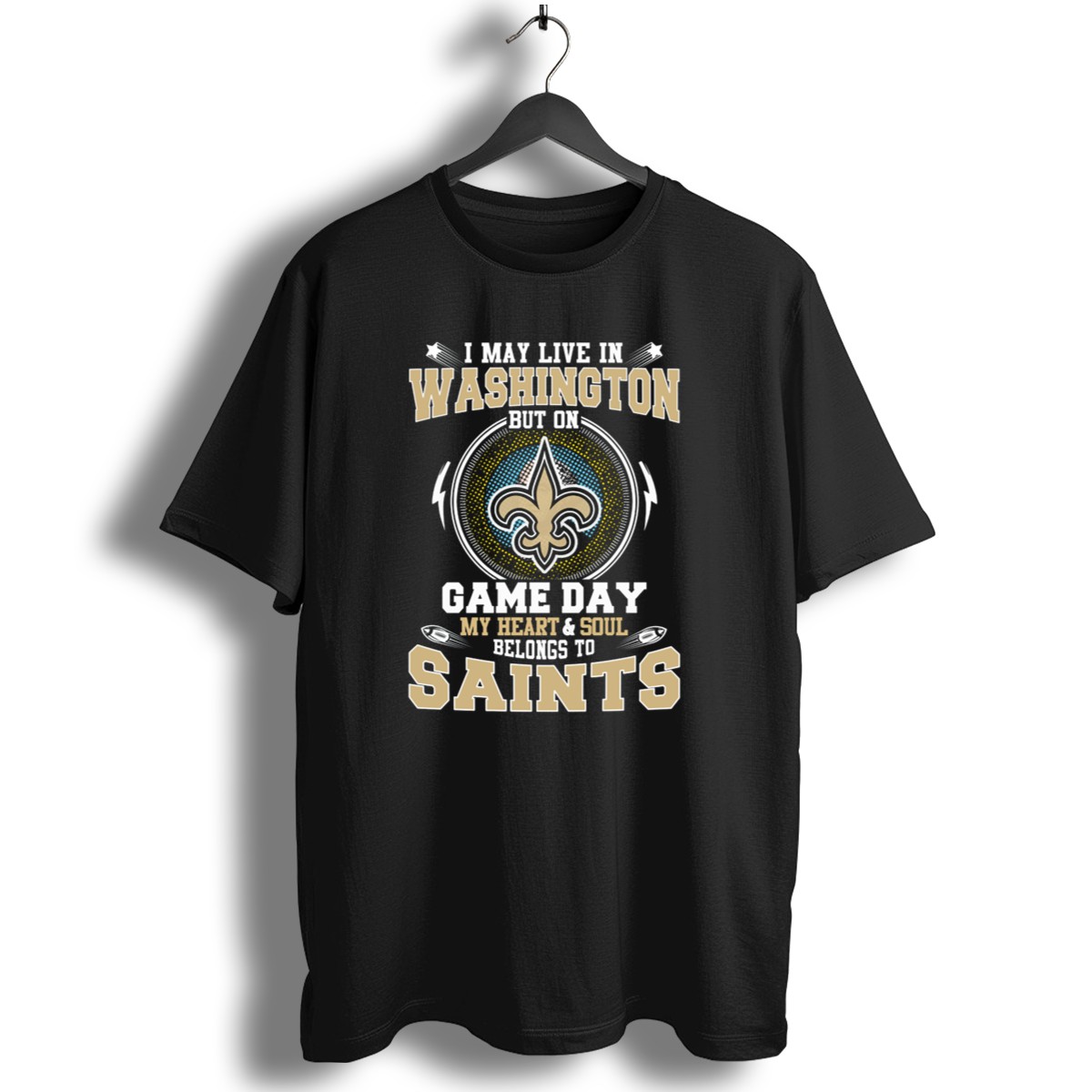 I May Live In Washington But On Game Day My Heart And Soul Belongs To Saints T Shirt