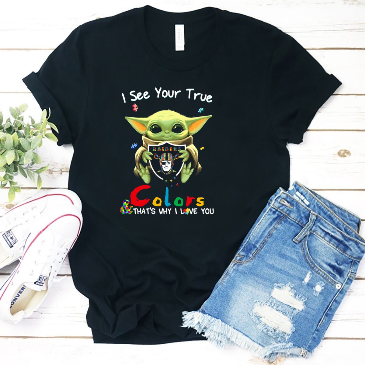 Show off your love for the Las Vegas Raiders with this fan-made “I See Your True Colors” Yoda T-shirt! Perfect for die-hard fans, this classic tee combines the iconic imagery of Yoda with your team spirit, making it an ideal choice for casual outings, game days, or themed events. Crafted with comfort and durability in mind, this shirt allows you to express your passion while staying stylish and comfortable throughout the year.
