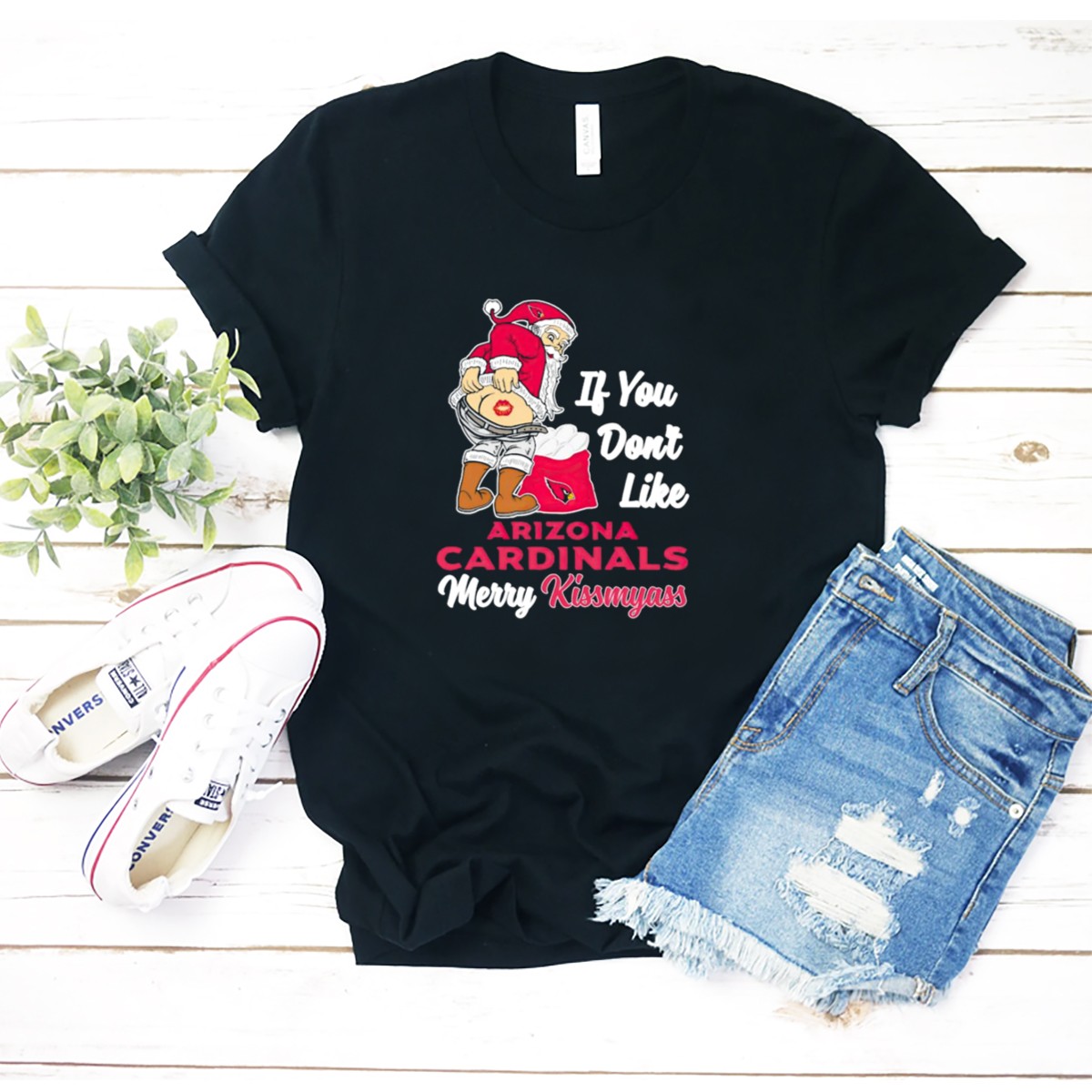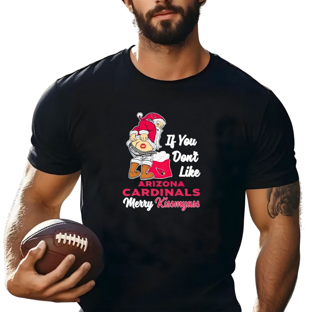 Show your team spirit this holiday season with our “If You Don’t Like Arizona Cardinals Merry Kissmyass Santa” T-shirt! Perfect for die-hard fans, this playful and cheeky design adds a festive twist to your casual wear. Whether you’re attending a game, celebrating at a themed event, or just enjoying a laid-back day, this shirt is sure to spark conversations and laughter. Made in the USA, it’s a unique fan-made piece that showcases your love for the Arizona Cardinals while embracing the holiday cheer!