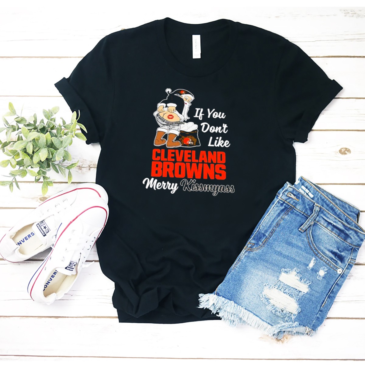 Show your unwavering support for the Cleveland Browns this holiday season with our fan-made “If You Don’t Like Cleveland Browns Merry Kissmyass Santa” T-shirt! Perfect for die-hard fans and casual wearers alike, this shirt is designed for fun gatherings, themed events, or simply spreading holiday cheer. Made in the USA, it combines a humorous twist with your love for the Browns, making it a standout piece in any casual wardrobe.