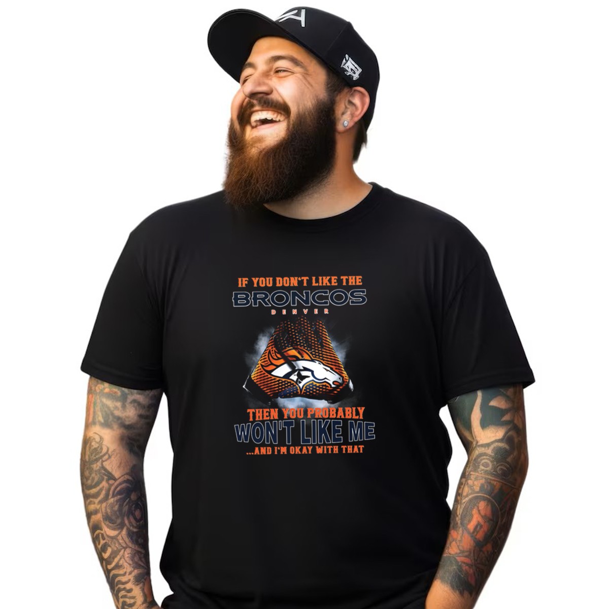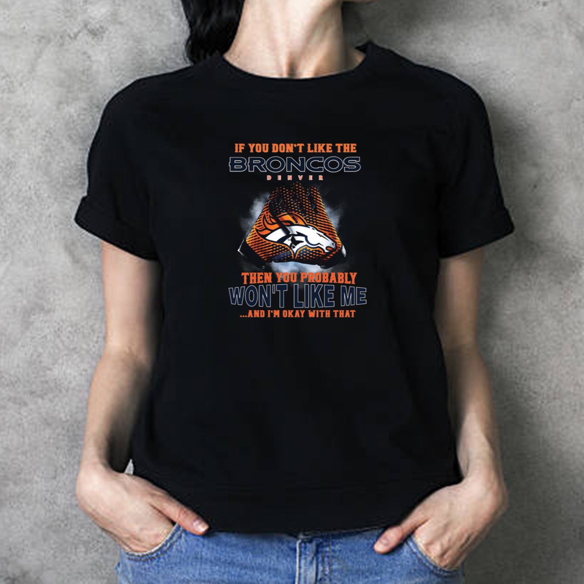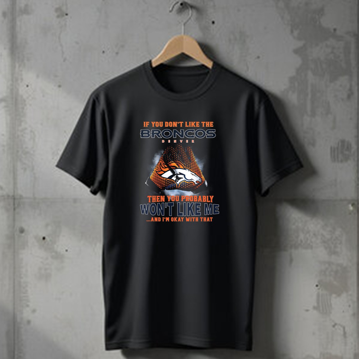 Show off your team spirit with our “If You Don’t Like The Denver Broncos Then You Probably Won’t Like Me And I’m Okay With That” T-shirt, perfect for devoted fans who take pride in their loyalty. This fan-made design celebrates your passion for the Broncos while making a bold statement about individuality. Ideal for casual outings, themed events, or just lounging around, this T-shirt combines comfort and style, making it a must-have for any Broncos supporter.