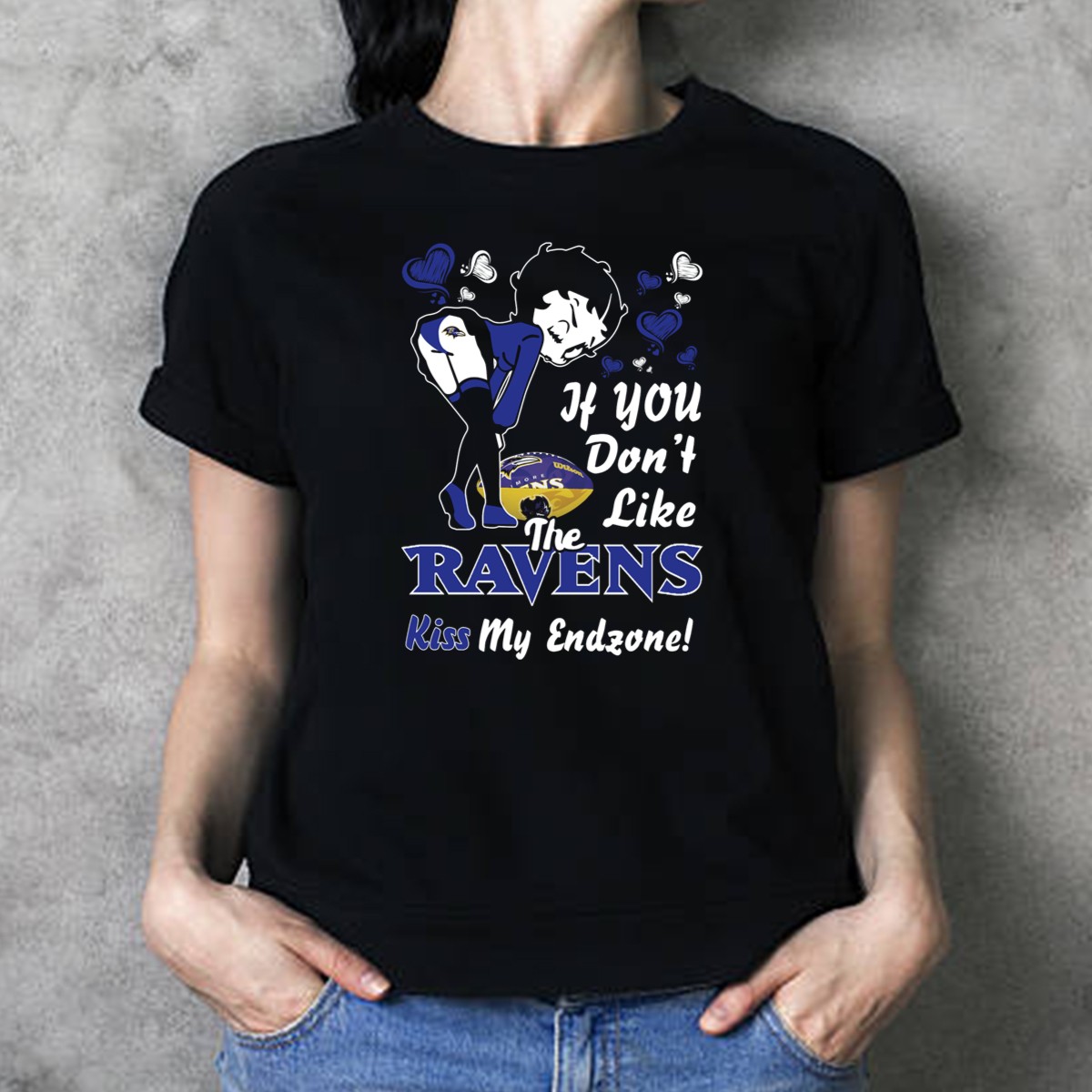 Show off your Ravens pride with this eye-catching “If You Don’t Like The Ravens Kiss My Endzone” Betty Boop T-shirt! Perfect for die-hard fans and casual wearers alike, this shirt blends a playful design with team spirit, making it ideal for game days, themed events, or just lounging around. Made with love and printed in the USA, this fan-made shirt is a unique addition to your collection that showcases your loyalty in style.
