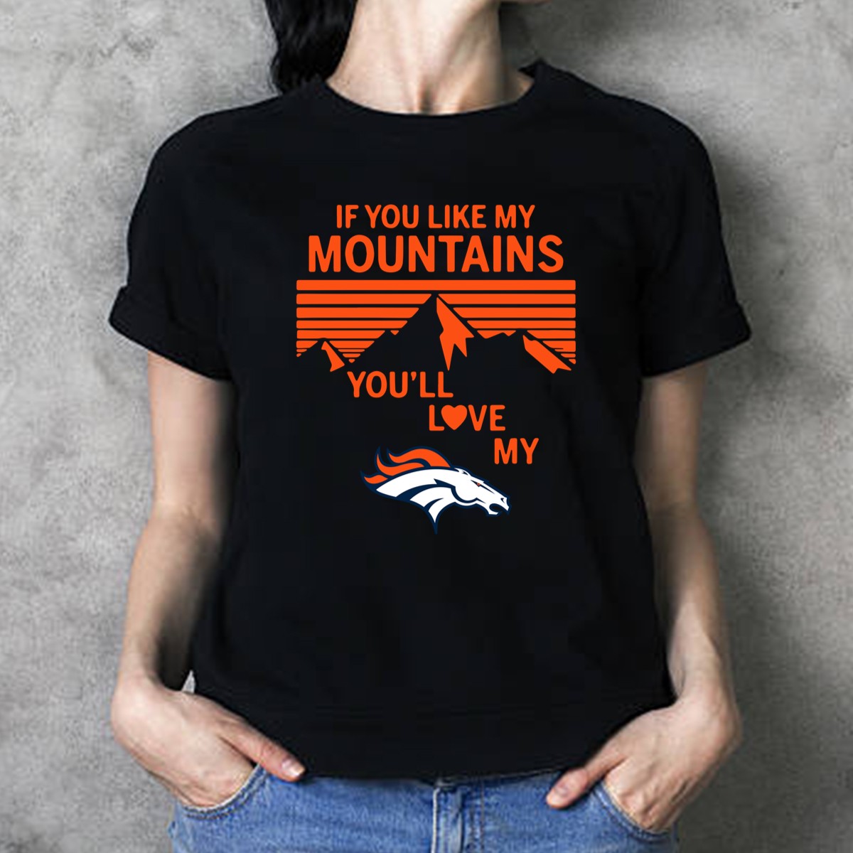 Show your love for the Denver Broncos and the great outdoors with this fan-made graphic T-shirt! Perfect for die-hard Broncos fans and nature enthusiasts alike, this shirt is ideal for casual outings, themed events, or simply cheering on your team from the comfort of your home. Made in the USA, it features a unique design that celebrates both the mountains and your favorite football team, making it a standout addition to any wardrobe.
