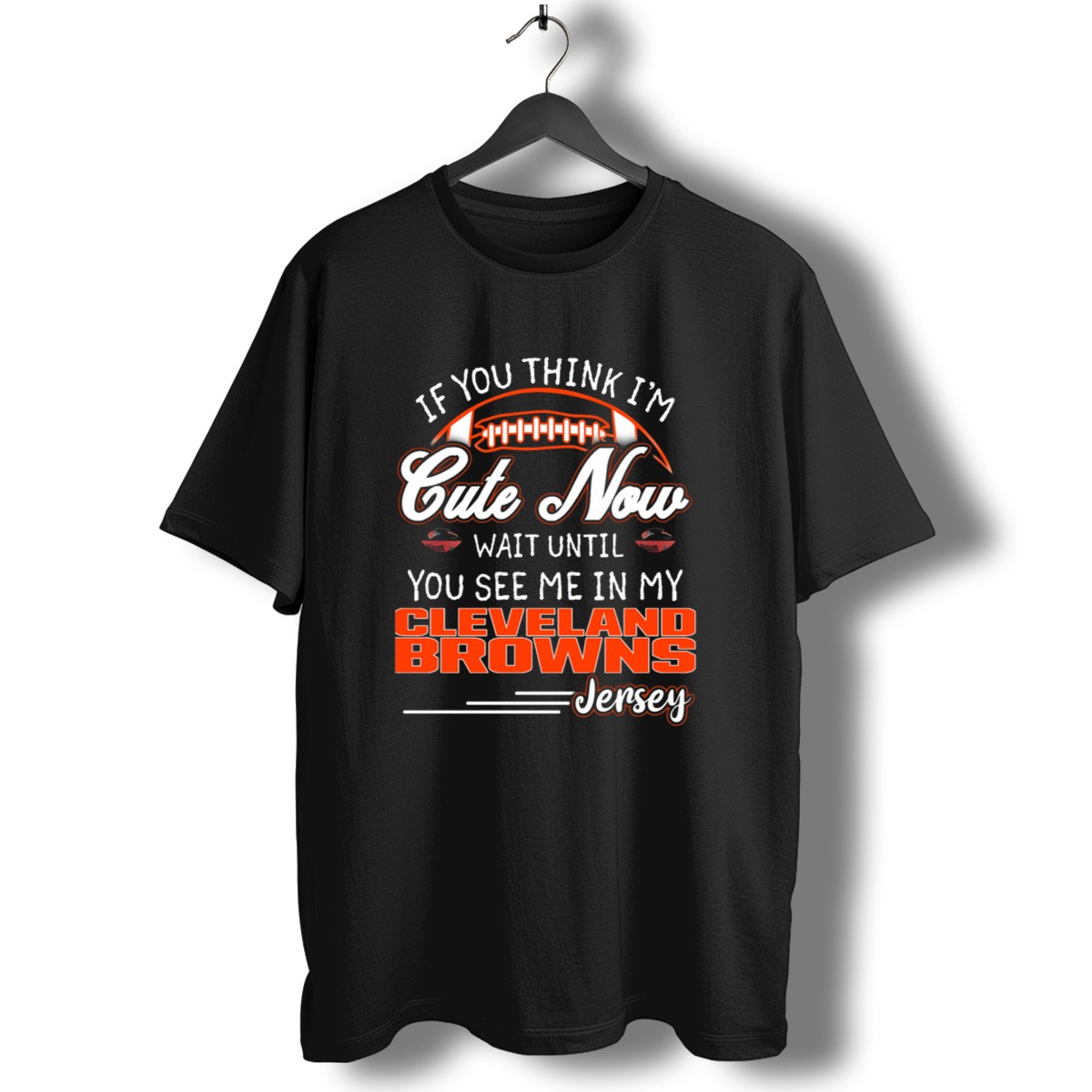 Show off your playful spirit and team pride with our “If You Think I’m Cute Now, Wait Until You See Me In My Cleveland Browns Jersey” T-shirt! Perfect for fans who love to blend comfort with style, this shirt is ideal for casual outings, themed events, or simply cheering on your favorite team from home. The unique fan-made design, printed right here in the USA, ensures you stand out in any crowd while celebrating your love for the Cleveland Browns.