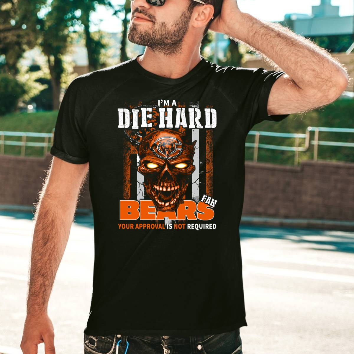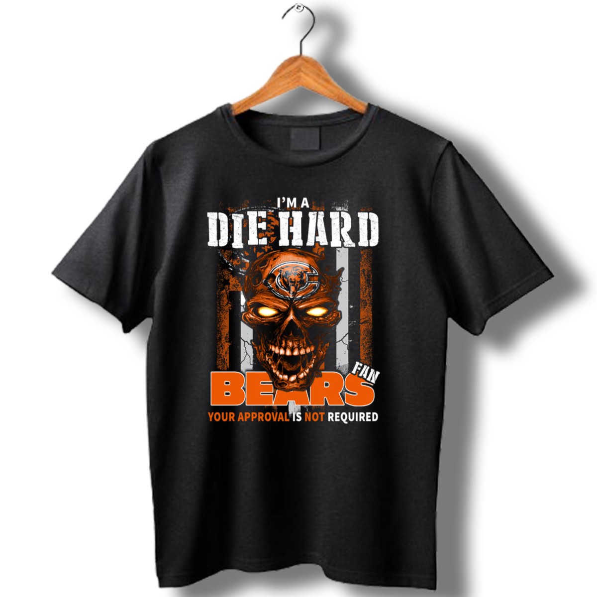 Show your unwavering support for the Chicago Bears with this fan-made “I’m A Die Hard Chicago Bears Fan Your Approval Is Not Required” T-shirt! Perfect for true fans who wear their loyalty proudly, this classic tee is ideal for casual outings, themed events, or simply lounging around. Made in the USA, this shirt combines comfort and style, making it a must-have addition to any Bears fan’s wardrobe.