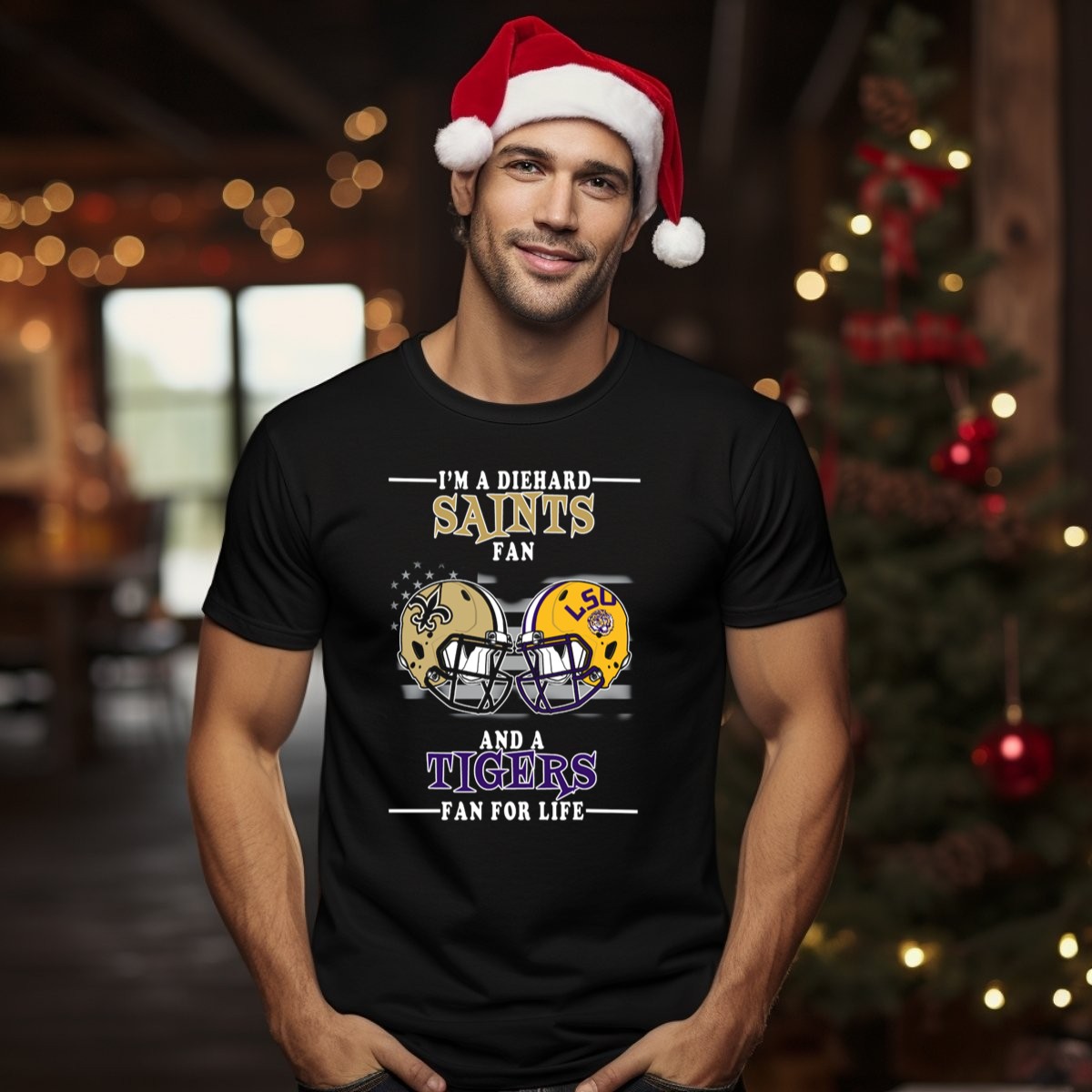 Show off your unwavering loyalty with our “I’m A Diehard Saints Fan And A Tigers Fan For Life” T-shirt, designed for the ultimate sports enthusiasts! Crafted for comfort and style, this shirt is perfect for game days, casual outings, or themed events. Whether you’re cheering from the stands or watching the game with friends, this fan-made design, proudly printed in the USA, will make you stand out as a true supporter.