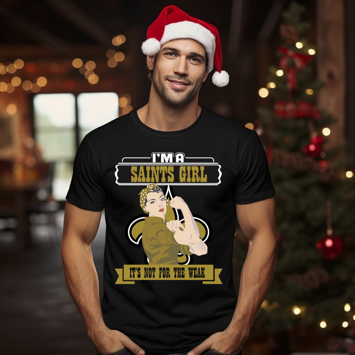 Show your true colors and unwavering support with the “I’m A New Orleans Saints Girl It’s Not For The Weak” T-shirt! Perfect for passionate fans and spirited individuals, this shirt is designed for casual wear, themed events, or simply showcasing your love for the Saints in your daily life. The fan-made design, proudly printed in the USA, makes it a standout choice for any devoted supporter who believes that true fandom is a strength!