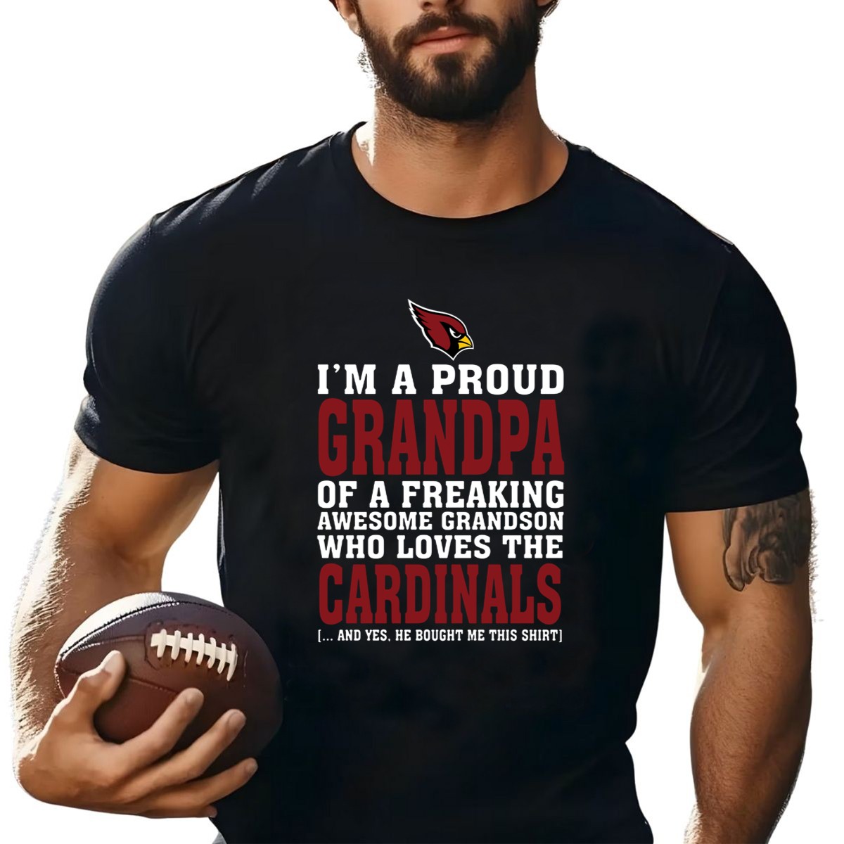 Show off your pride in being a grandpa with this fun and spirited T-shirt! Perfect for die-hard Arizona Cardinals fans, this shirt is designed for those who cherish their awesome grandson while cheering for their favorite team. Whether you’re at a game, a family gathering, or just out and about, this shirt makes a fantastic statement piece for any casual occasion.