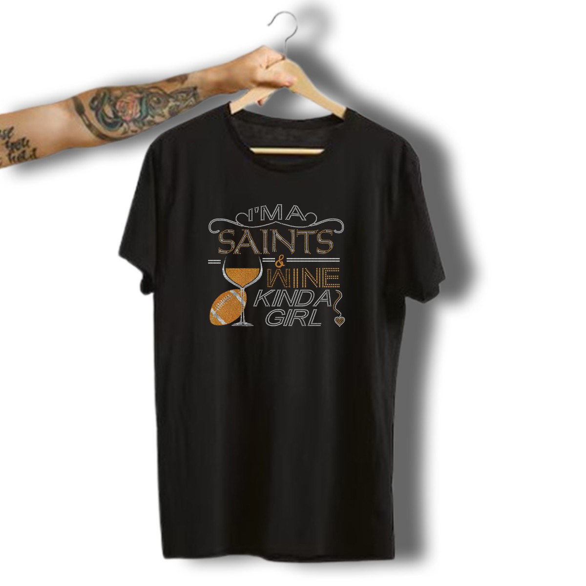 Introducing the “I’m A Saints And Wine Kinda Girl” T-shirt, a perfect blend of style and personality for the passionate Saints fan who loves a touch of sparkle. This fan-made design features stunning crystal embellishments that catch the light beautifully, making it an eye-catching choice for casual outings, themed events, or daily wear. Crafted for ultimate comfort and durability, this classic-fit shirt is designed to showcase your love for the Saints while adding a bit of glam to your wardrobe.