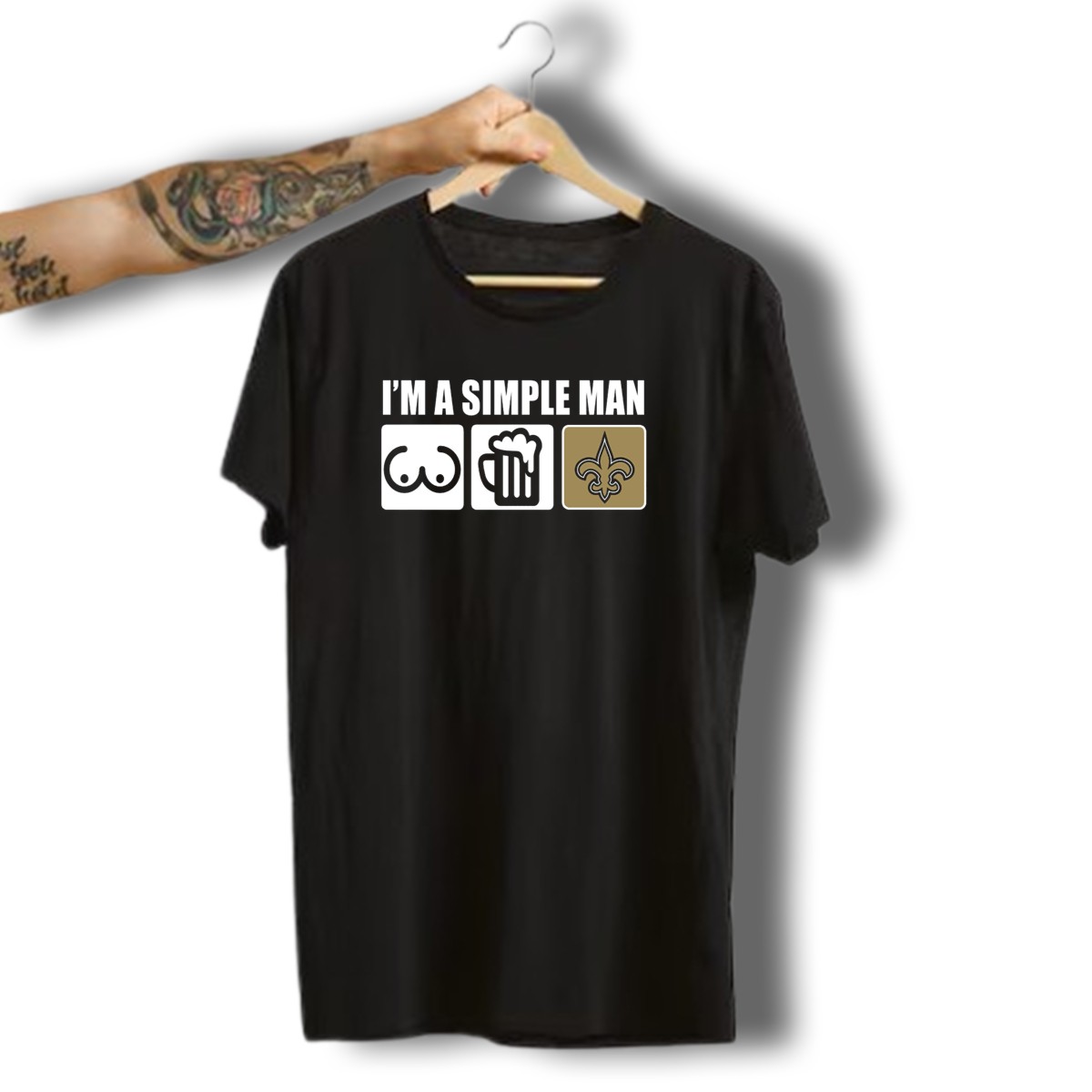 Show off your love for the Saints and your laid-back lifestyle with the “I’m A Simple Man Beer Fleur De Lis” T-shirt. Perfect for die-hard fans and casual wearers alike, this shirt is ideal for game days, barbecues, or just lounging around. The unique fan-made design printed in the USA makes it a standout piece that captures the spirit of New Orleans and its vibrant culture.