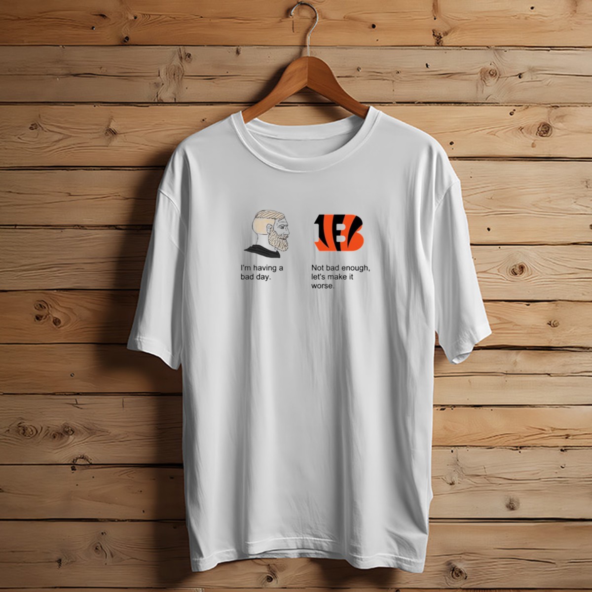 Embrace your inner fan with the “I’m Having a Bad Day Cincinnati Bengals Let’s Make It Worse” T-shirt! Designed for devoted Cincinnati Bengals supporters, this playful tee is perfect for game days, casual outings, or just when you need a little humor in your life. Made with a unique fan-made design, this shirt brings a light-hearted twist to your wardrobe, making it an ideal choice for any Bengals enthusiast looking to express their passion with a smile.