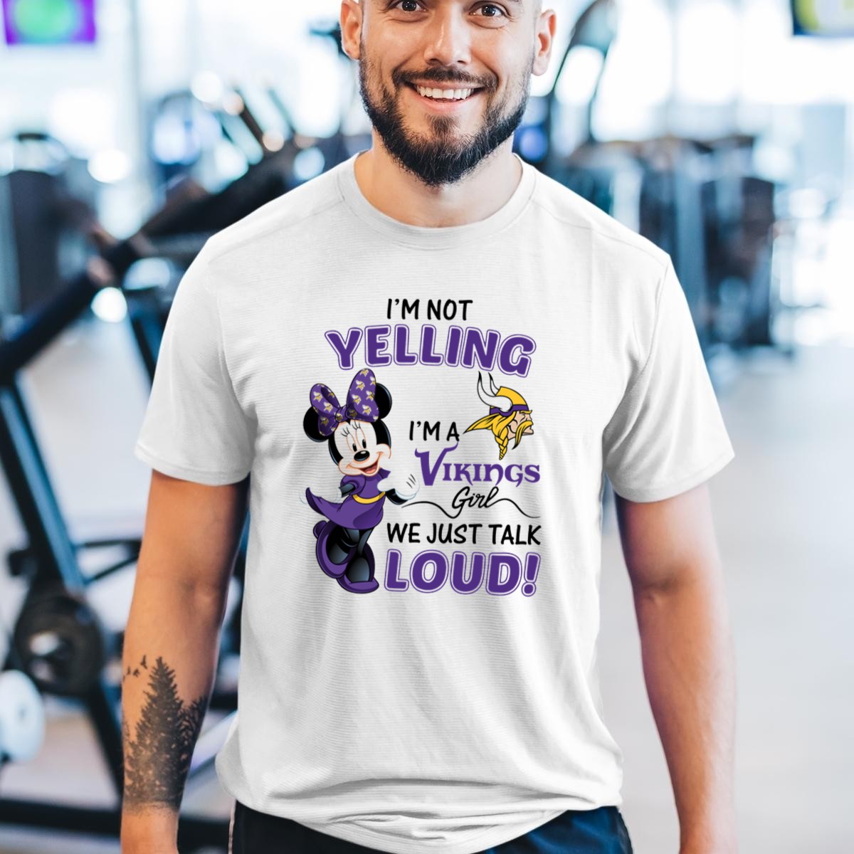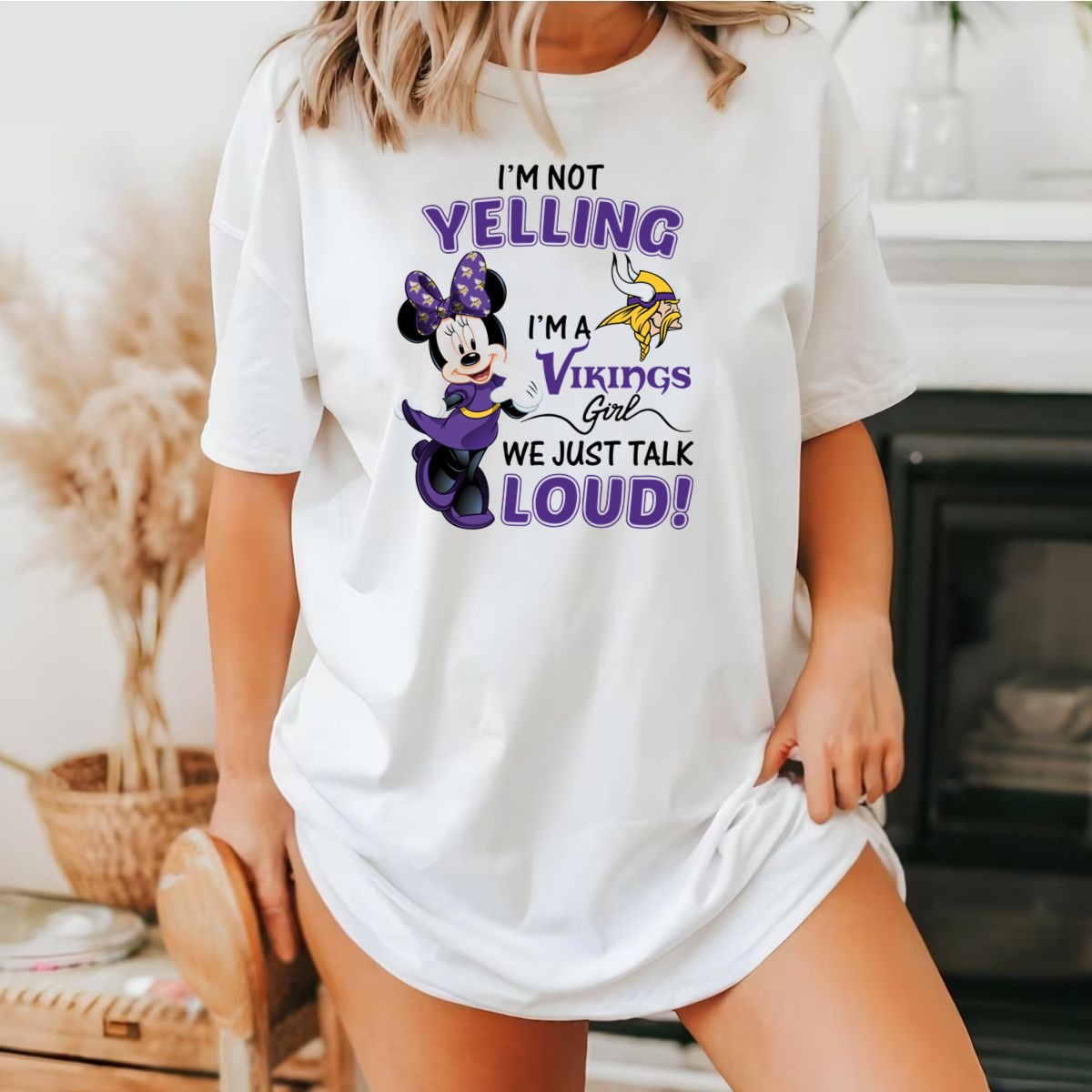 Show your pride as a Vikings fan with our “I’m Not Yelling, I’m a Vikings Girl” T-shirt! Perfect for spirited game days or casual outings, this fan-made design combines your love for the Minnesota Vikings with a playful twist. Made from 100% cotton, this shirt is not only stylish but also incredibly comfortable, making it an ideal choice for any occasion, whether you’re cheering from the stands or enjoying a themed event with friends.