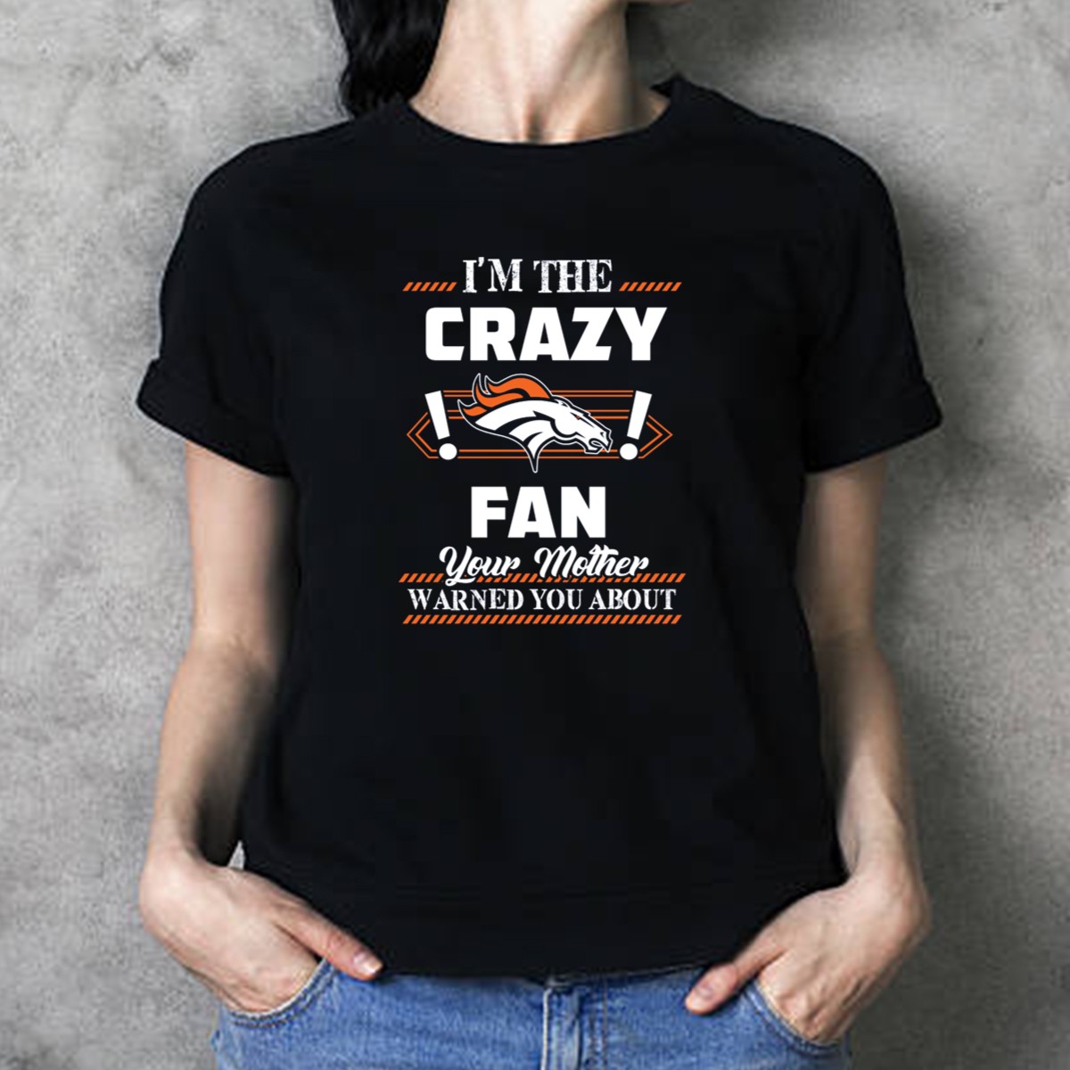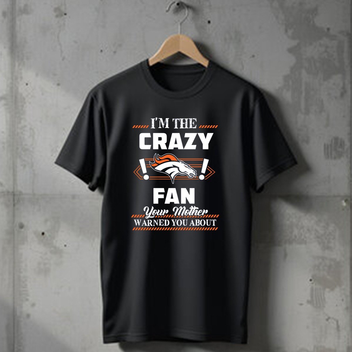 Show off your wild spirit and unwavering loyalty to the Denver Broncos with our “I’m The Crazy Denver Broncos Fan Your Mother Warned You About” T-shirt! Perfect for die-hard fans and casual supporters alike, this shirt is great for game day, tailgating, or any casual outing. Made with a fan-made design printed in the USA, it’s a fun and unique way to express your passion for the team while staying comfortable and stylish.