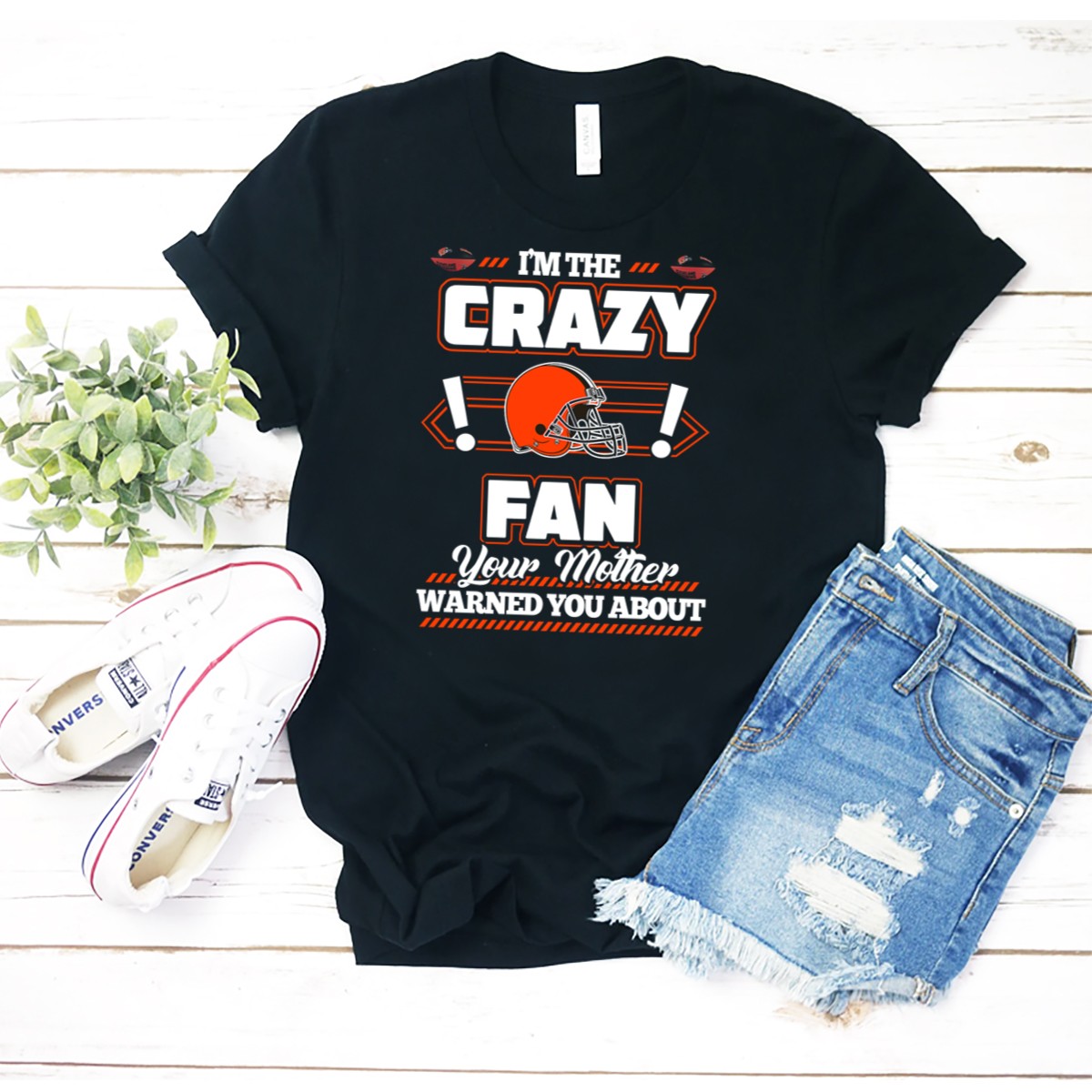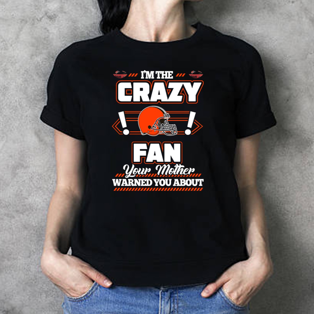 Show off your unwavering support for the Cleveland Browns with this fun and quirky “I’m the Crazy Fan Your Mother Warned You About” T-shirt. Perfect for die-hard fans, this shirt is ideal for game days, casual outings, or themed events where you want to make a statement. Crafted with a unique fan-made design and printed in the USA, this T-shirt combines comfort and style, making it a must-have for any true Browns supporter.