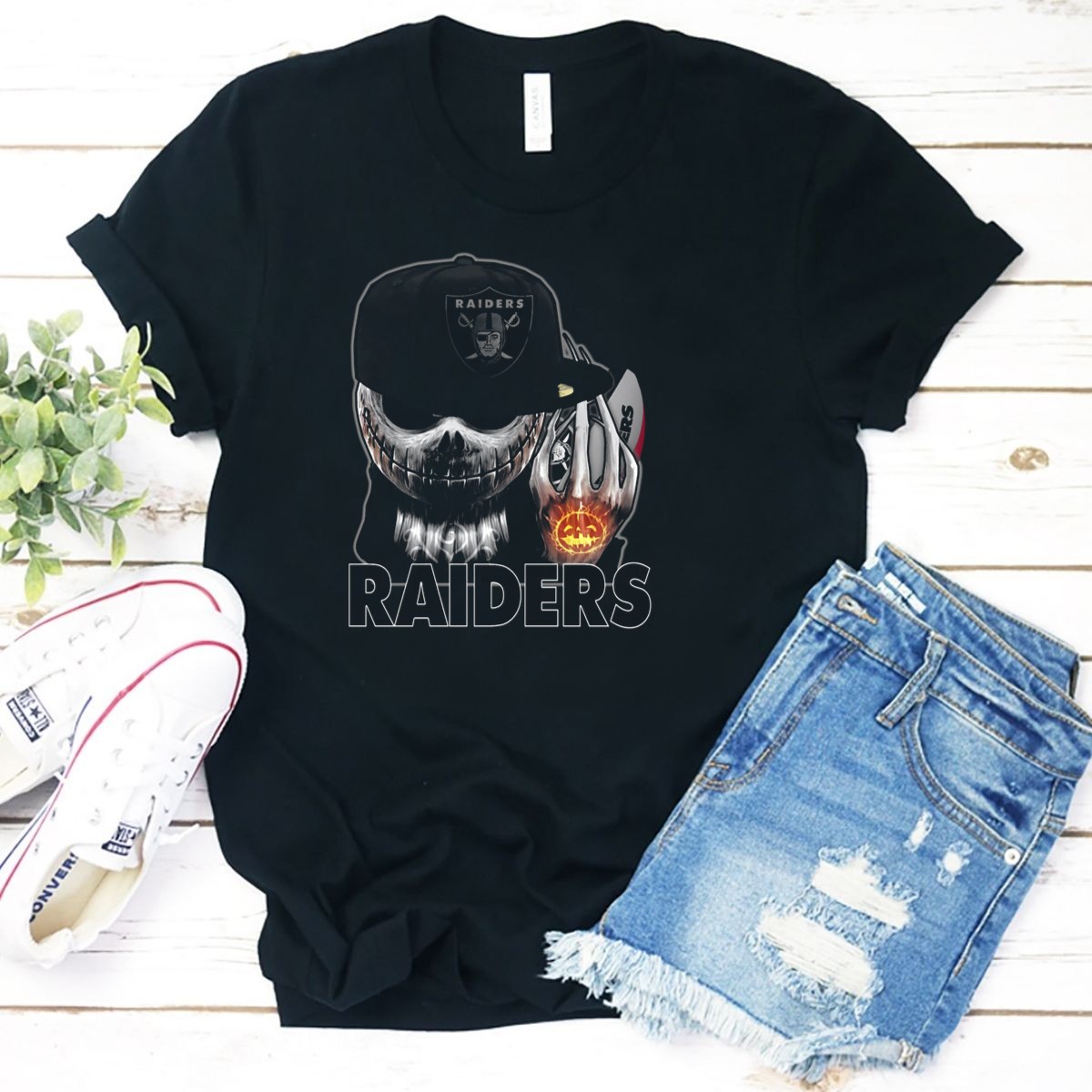 Jackskull Raiders Halloween Skull Holding Pumpkin T-Shirt