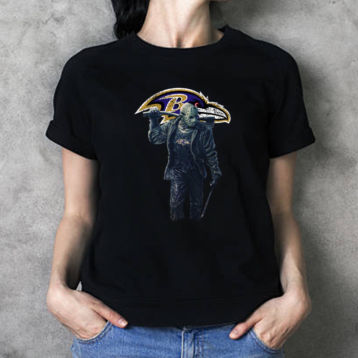 Unleash your inner fan and horror aficionado with our Jason Voorhees Baltimore Ravens T-Shirt! This unique graphic tee combines the iconic slasher character with the spirit of the Ravens, making it perfect for die-hard fans who love to stand out. Ideal for casual outings, themed events, or simply showcasing your team pride during game day, this shirt is sure to turn heads and spark conversations wherever you go.